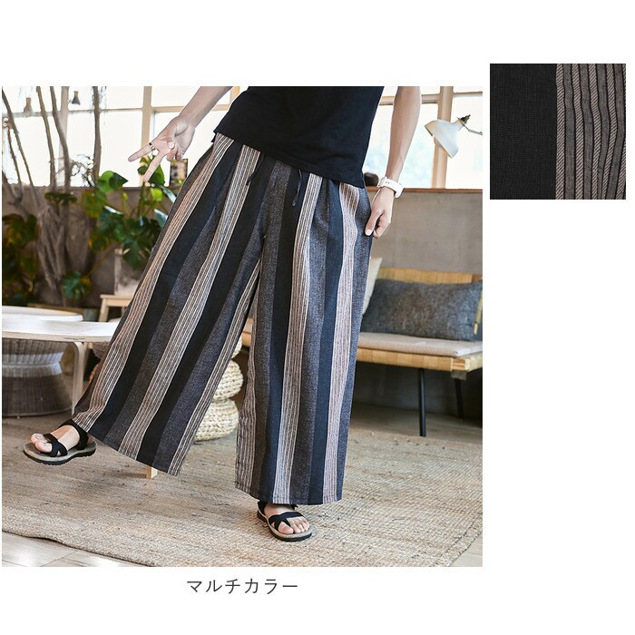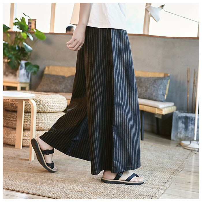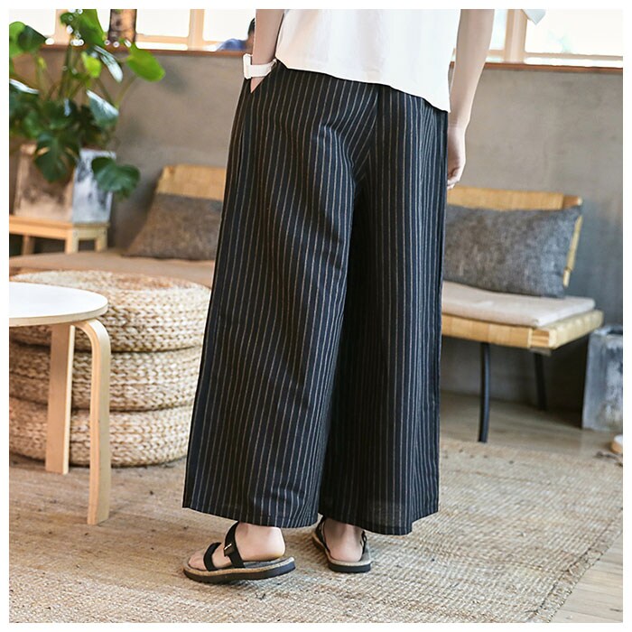 ワイドパンツ 312b【グレーストライプ】【XLサイズ】