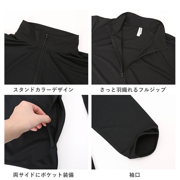 | 商品説明 | 薄手で柔らかいドライジップジャケットが登場。春から夏にぴったりの薄手の生地。日焼け予防や、クーラーの冷え対策に◎ストレッチ性もあり動きやすく、スポーツやダンスなどの運動着として着るのもおススメ!速乾性もあり、汗をかいても吸収し、すぐに乾くのも魅力。シンプルな無地のカラーで年代性別問わず着こなせるのも嬉しいポイント。 |