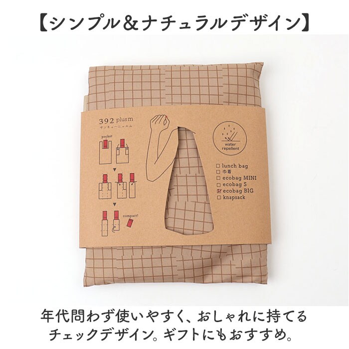 392plus m ポケット収納エコバッグ BIG【check.off】