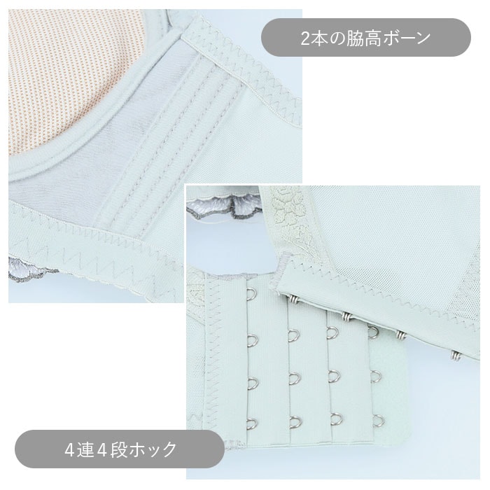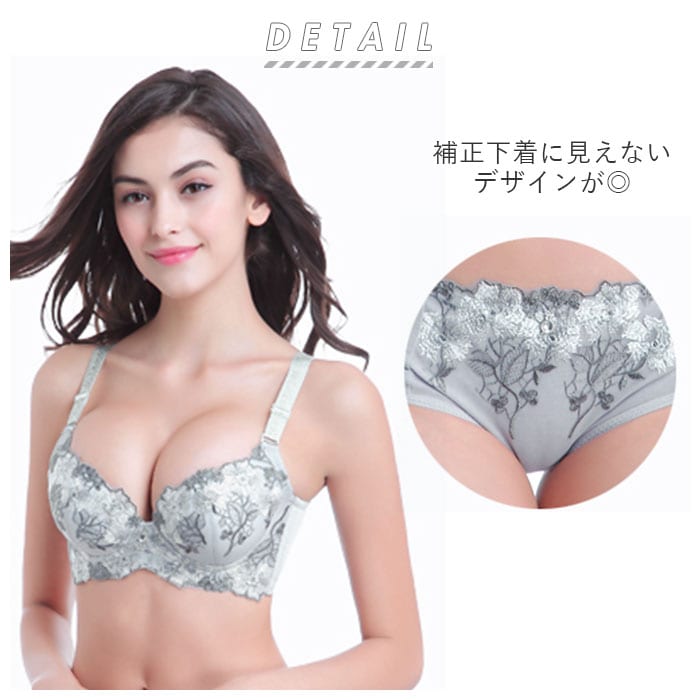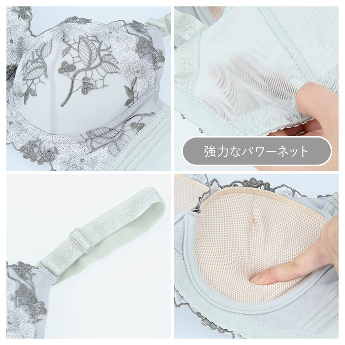 | 商品説明 | 補正下着に見えない!洗練されたデザインが魅力の脇高ブラとショーツセット!気になる背中のぜい肉と、胸からいつの間にか流れてしまった脇肉を、強力なパワーネットで本来のバスト位置に戻し、背中もすっきり!2本の脇高ボーンと4連4段ホックで脇肉と背肉をしっかりホールドし、美胸に加え美しい姿勢に!若い世代の方にも愛される、繊細でかわいらしいフラワーレースデザイン。ブラとショーツの中央には、キラリと光るワンポイントチャーム付き♪ |