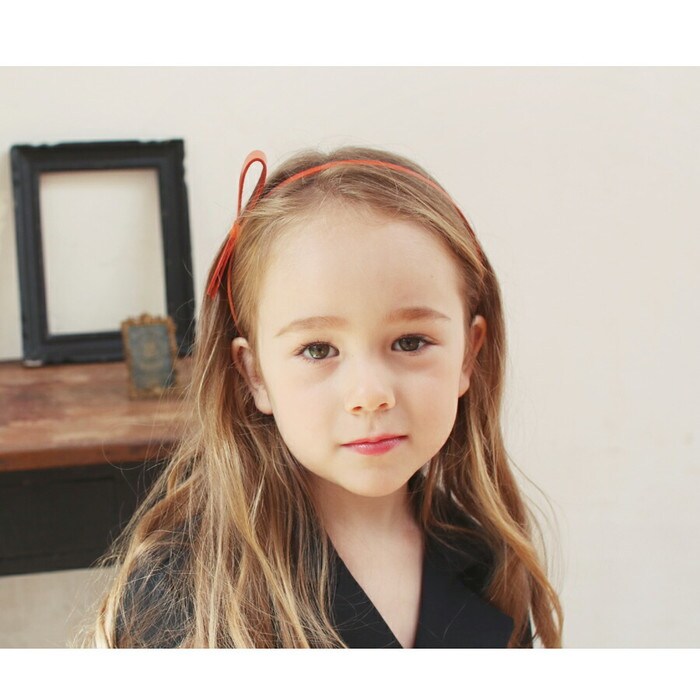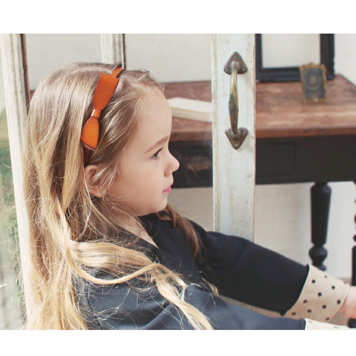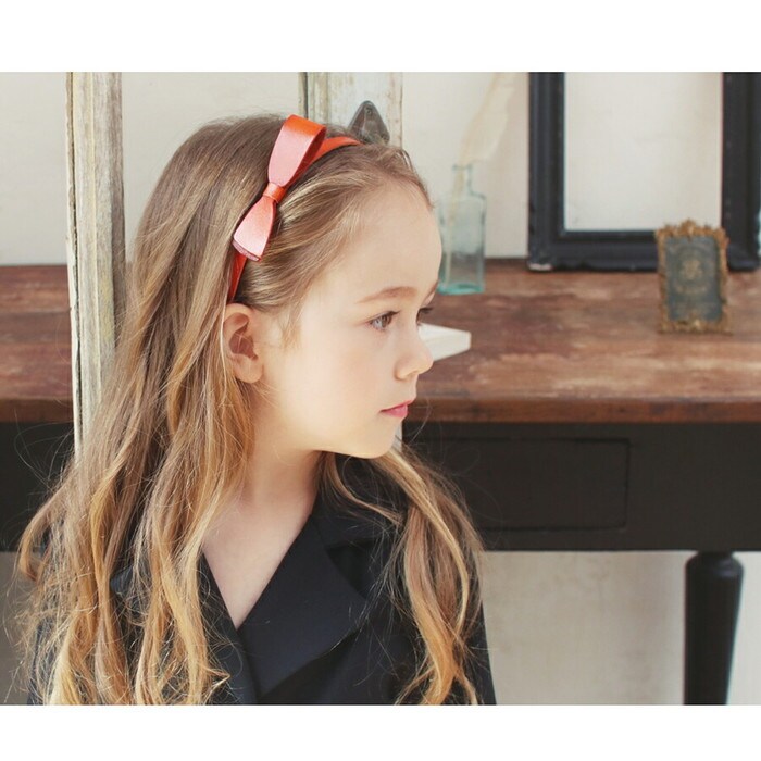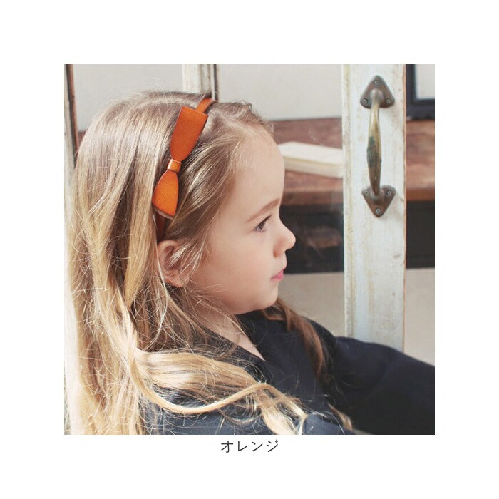 本革リボンカチューシャ大【オレンジ】【フリー】