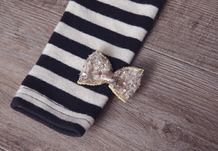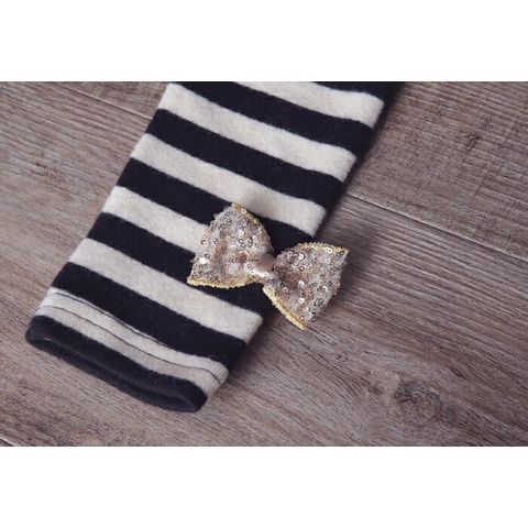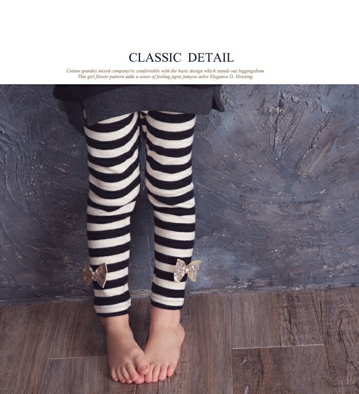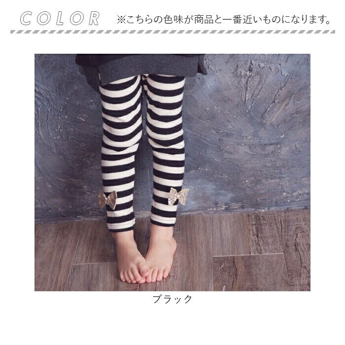 商品説明ナチュラル&カジュアルなボーダーレギンスにキラキラリボンをつけて、ほんのりガーリーに!よく見ると片方のリボンはスパンコール、もう片方はグロッシーな生地で、さりげないアシメントリーデザインがおしゃれポイント★ 定番で扱いやすいボーダーも、他の人とかぶらない小技の効いたレギンスで取り入れることで、上品おしゃれ上級者♪ロンTやチュニック、ワンピ、ショートパンなど、どのお洋服にも合わせやすく、コーデの幅が広がるお洋服が大好きな女の子にぴったり!ボーダーレギンスです。・モデルサイズ:モデルAge:4歳/Weight:13.1kg/Height:102cm ・モデルの着用サイズ:90cm