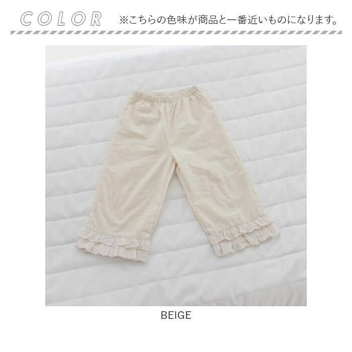 | 商品説明 | 無地から伝わる「やさしい気持ち」と綿100の「着心地のよさ」を重視したパジャマパンツです。ナチュラルさにほんのり可愛らしさを加えた裾レースがこだわりのポイントです。ワンピースの下にパジャマパンツを履くだけで寝る時間が安心です。綿100使用した女の子のパジャマパンツは、ほんのり可愛いナチュラルなテイストから子供へのプレゼントにも喜ばれます。 |