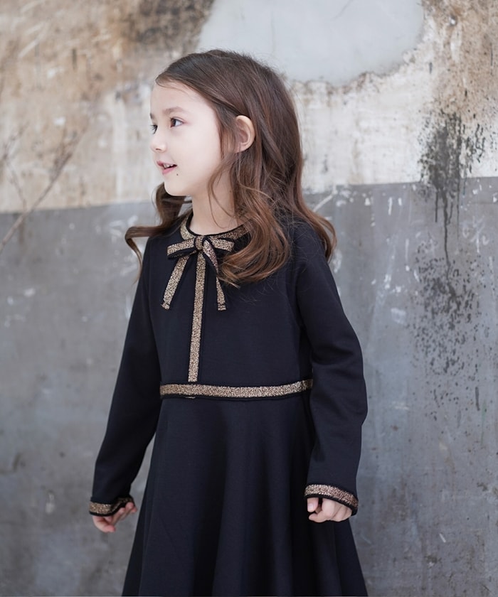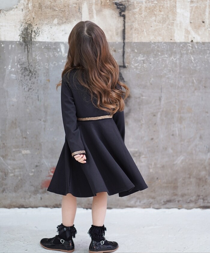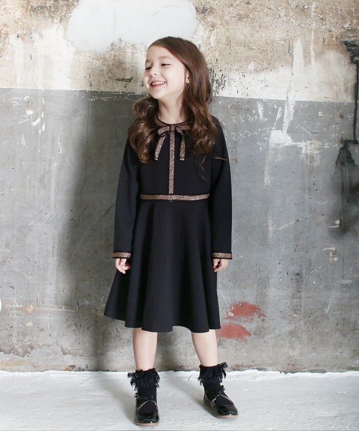 | 商品説明 | ■ポーラワンピースについて1枚で魔法にかかりたいの♪リボンがアクセントのスウェット素材の動きやすい Roraフレアワンピースは、シックなブラックにゴールドのリボンが映える 大人っぽいクラシックな雰囲気。着ているだけで毎日が楽しくなる可愛さです。■モデル情報:身長110cm/体重18.5kg/110cm着用 |