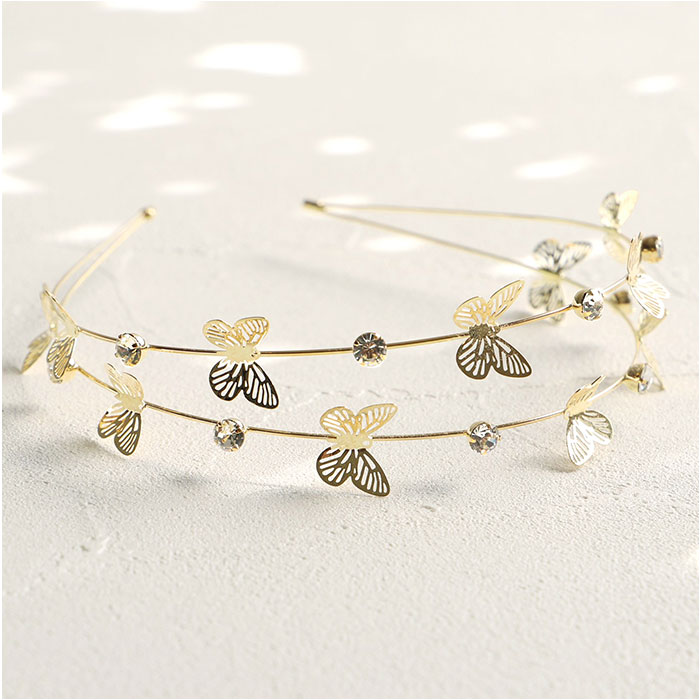 | 商品説明 | 頭に付けるだけで、大人顔負けのおしゃれさん♪「RORA ハーパー カチューシャ」。蝶々とキラッと輝くビジューを組み合わせた、2連カチューシャ♪上品なデザインが魅力。おろし髪のワンポイントに。頭のカタチに合わせて心地よくフィット。華奢で落ち着きのある仕上がり。フォーマルシーンなどでのアップスタイルにも☆ |