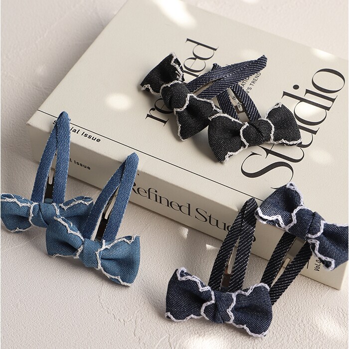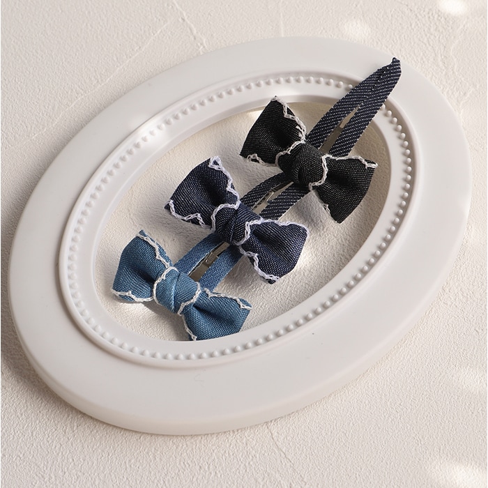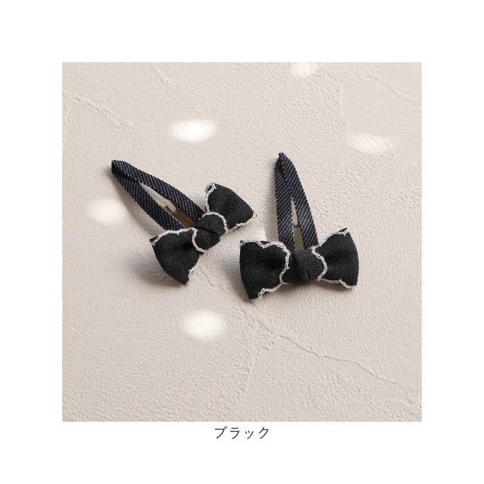 | 商品説明 | ヘアアレンジのワンポイントに♪「RORA ジャスミン ヘアクリップ」。デニム調の生地を使ったカジュアルライクなリボン型。位置を変えて付けられる2個セット♪髪を挟んでパチンと留めるだけ。まとめ髪のアクセントや、サイド留めに!デイリー使いにはもちろん!ダンス発表会などの衣装に合わせてもOK。お気に入りを選べるカラーバリエーション。姉妹やお友達と、色違い揃えもおすすめ☆ |