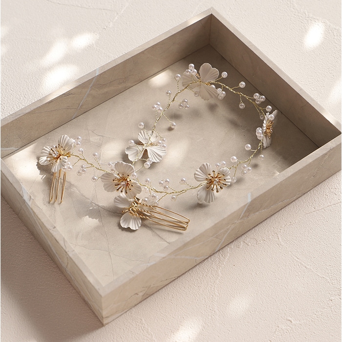 | 商品説明 | 頭に付けるだけで、大人顔負けのおしゃれさん♪「RORA ジェマ ヘアバンド」。お花のモチーフに、キラッと輝くビジューやイミテーションパール☆上品な印象を演出。左右両サイドがピンのようになっており、髪に差し込むだけ。耳周りが痛くなりにくい◎おろし髪にもアップスタイルにも!フォーマルシーンにもマッチする、繊細な華やかさが魅力。 |