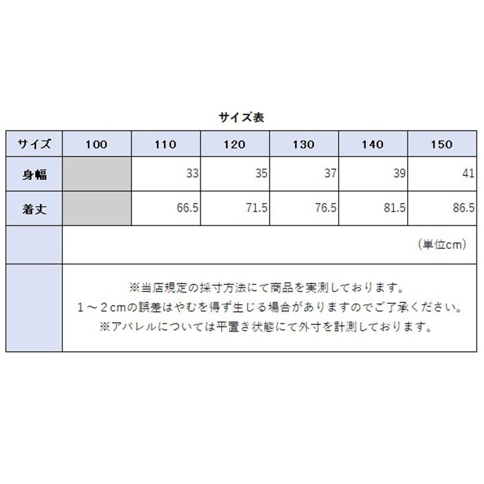 | サイズ | [ガールズ] ・110cm ・120cm ・130cm ・140cm ・150cm ※サイズについて詳細は、商品画像の中にあるサイズ表をご覧くださいませ。 |