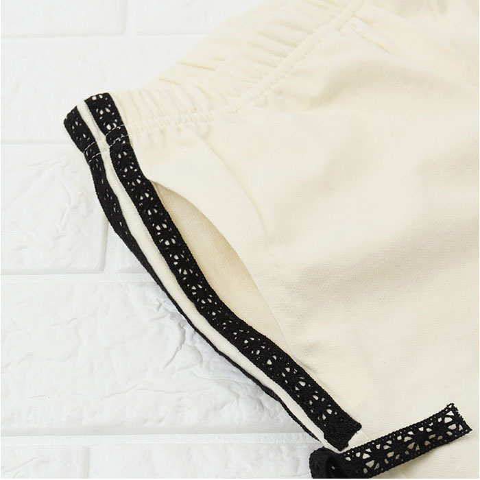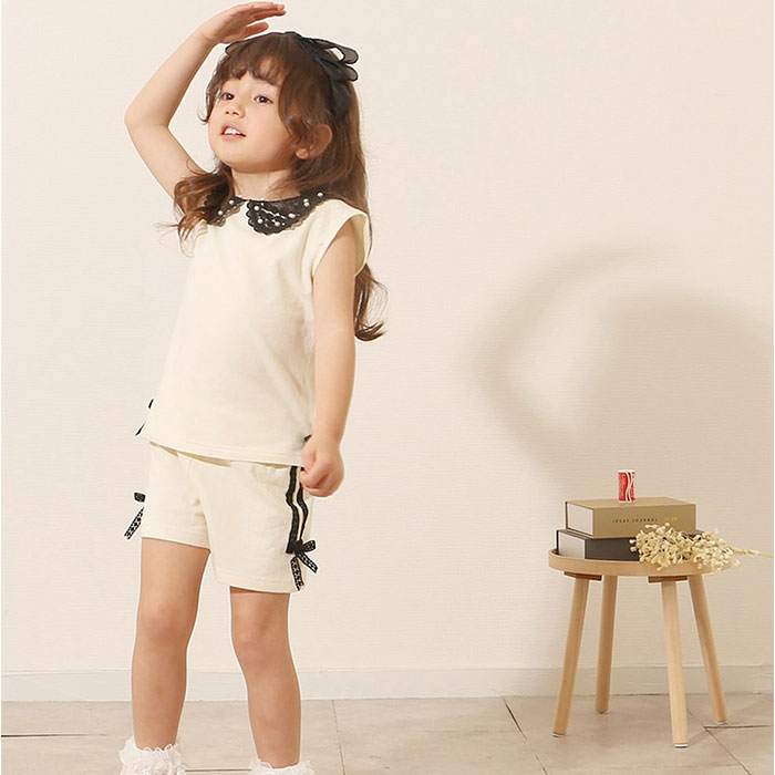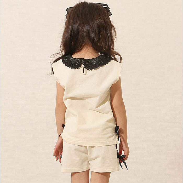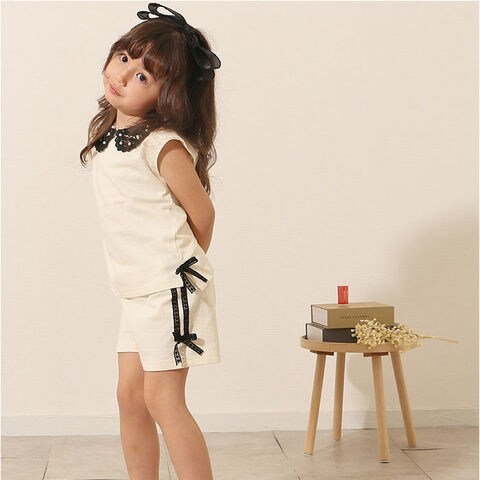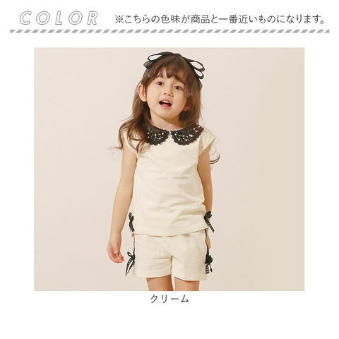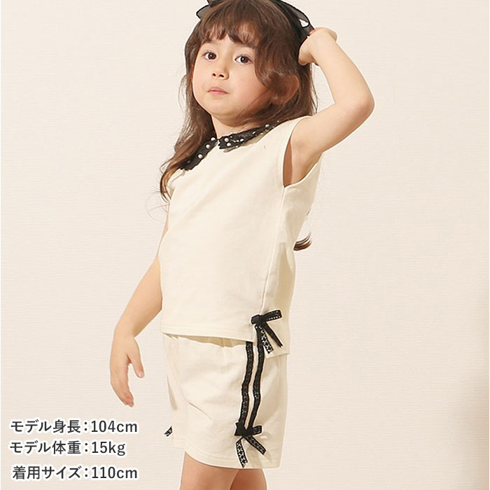 | 商品説明 | 可愛いセットアップで、気分もアップ☆「Rora ローラ エリン 上下セット」。家族と過ごすお家時間、普段のお出かけにも。毎日着たくなるトップスとショートパンツ。ブラックカラーのレース襟やレースリボンがおしゃれ!クリームカラーのアクセントに☆柔らかな綿100%素材。肌当たりが優しく、着心地の良さも魅力の1つ。フレンチスリーブのトップス。襟元にはイミテーションパールをON、フォーマルシーンでも。(※)バックボタン付きです。締め付けのない、ウエストゴム仕様のショートパンツ。左右にポケット付き。裏返してネットに入れ、自宅で洗濯機洗い可能。お手入れが簡単だから、ママも笑顔☆ |