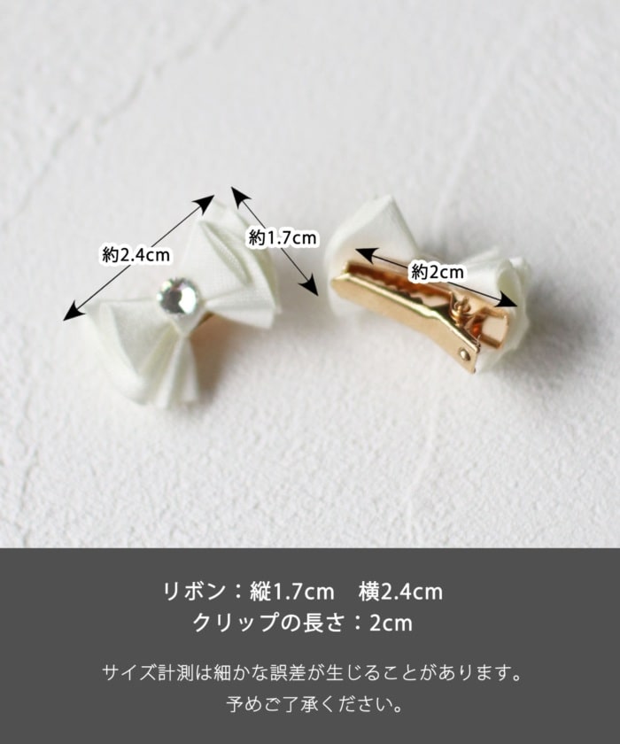 | サイズ | クリップの長さ:2cm リボンモチーフ:縦1.7cm/横2.4cm |