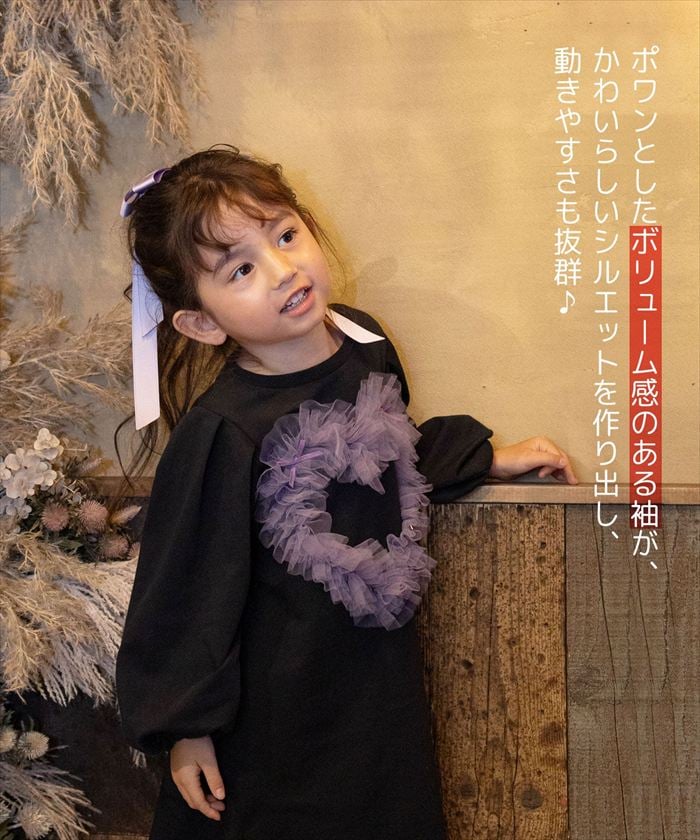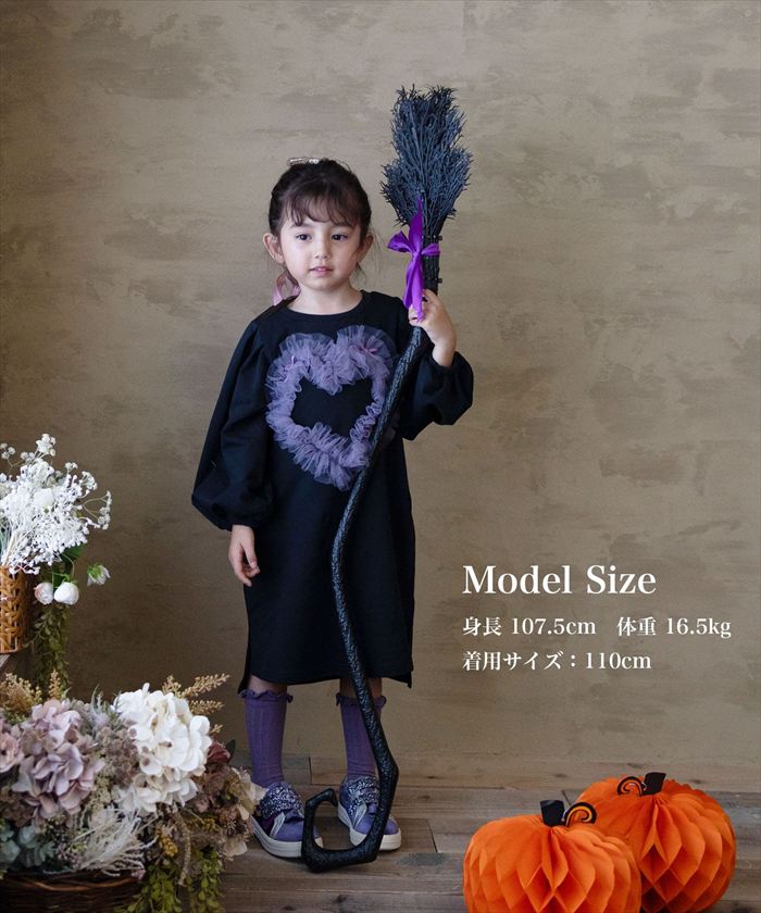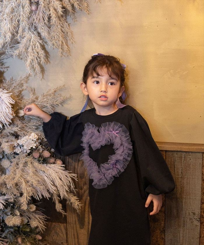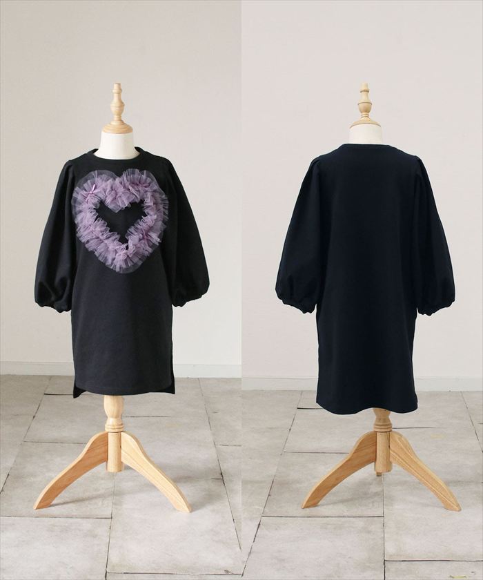 Rora ムラサキ ハートワンピース【ブラック】【140cm】