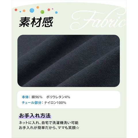| 素材 | 本体:綿96%、ポリウレタン4%/チュール部分:ナイロン100% |