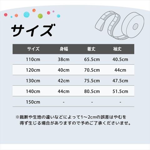 | サイズ | 【110cm】着丈(NP~):65.5cm/身幅:38cm/袖丈:40.5cm 【120cm】着丈(NP~):70.5cm/身幅:40cm/袖丈:44.0cm 【130cm】着丈(NP~):75.5cm/身幅:42cm/袖丈:47.5cm 【140cm】着丈(NP~):80.5cm/身幅:44cm/袖丈:51.5cm |
