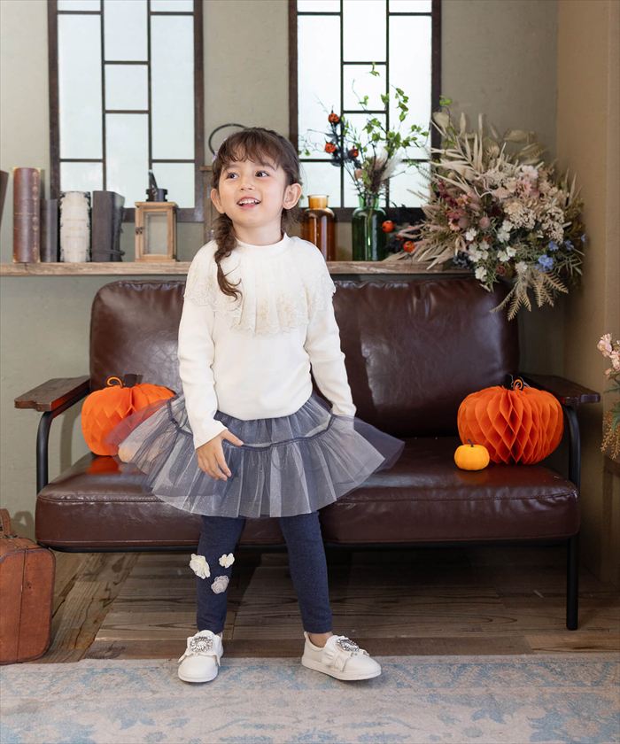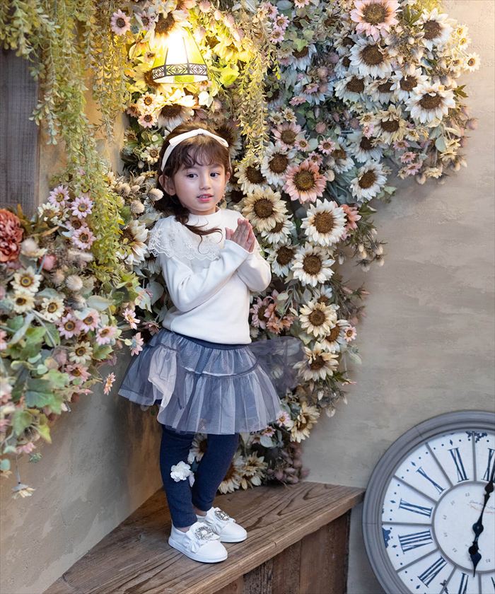 | 商品説明 | ラメチュールとお花が個性を引き立てるスカッツ♪ふんわりと広がるチュールが光を受けてキラキラと輝き、どんなシーンでも注目の的♪ レギンスに咲く3つの小さなお花がいつものコーディネートに愛らしさを添えます。かわいらしさ満点のスカッツで、日々のおしゃれを楽しんでください。 |