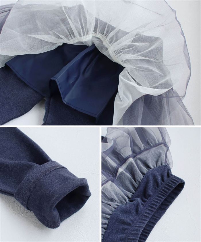 | 素材 | [本体] レーヨン38%、アクリル29%、綿27%、ポリウレタン6% [スカート部分] 表側チュール:ナイロン100% 裏側チュール:ポリエステル100% 裏側生地:ポリエステル100% |