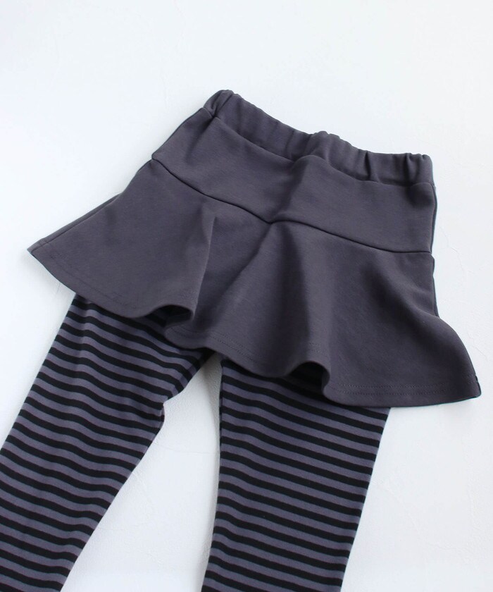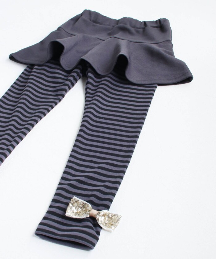 Rora カエデ リボンボーダースカッツ【グレー】【140cm】