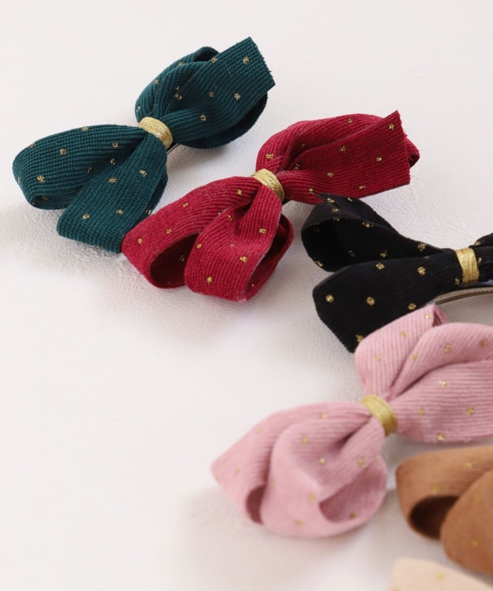 | 商品説明 | 女の子の髪に、やさしい輝きを。アイリンリボンヘアクリップは、上品なゴールドのきらめきが小さな笑顔を引き立てます。ふんわり感のあるリボンは、コーデュロイ素材であたたかみも◎。カラーは全6色から選べて、お出かけにも、フォーマルにも活躍。クリスマスや特別な日にもぴったり。さっとつけるだけで華やかに。お孫さんやお子さまへの贈り物にも、喜ばれること間違いなしの一品です。 |