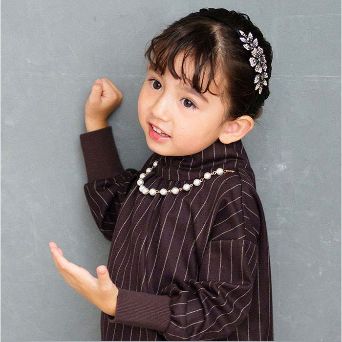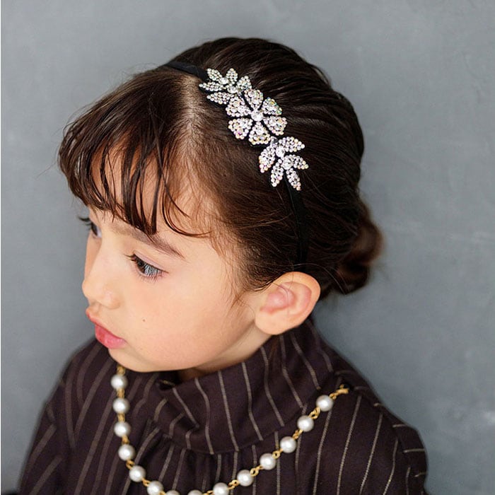 | 商品説明 | お子様の特別な日を一層華やかに彩る上品な「ハンドメイドラインストーンフラワーカチューシャ」。ひとつひとつ丁寧にジルコニアをつけたハンドメイドで、キラキラ感が他のラインストーンよりも格別に美しく輝きます。光を受けてキラキラと輝く高品質なラインストーンが贅沢に施され、ヘアスタイルを華やかに演出します。発表会、結婚式、入学式、卒業式、七五三、パーティーなど、フォーマルなシーンにぴったり!控えめながらも存在感を放ちます。どんなドレスやワンピースにも合わせやすく、お子様の可愛らしさを引き立てます。カラーは、明るく華やかなクリアラインストーンと、落ち着いた輝きのガンメタル系ラインストーンの2色をご用意。お子様の髪色や衣装の雰囲気に合わせてお選びいただけます。バンド部分は肌なじみの良いブラックのサテン生地で覆われており、頭に優しくフィットして、長時間の着用でも快適なつけ心地です。一つ加えるだけで、コーディネートが一気にランクアップする魔法のアイテム♪ギフトにもおすすめの逸品です。 |
