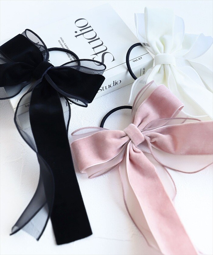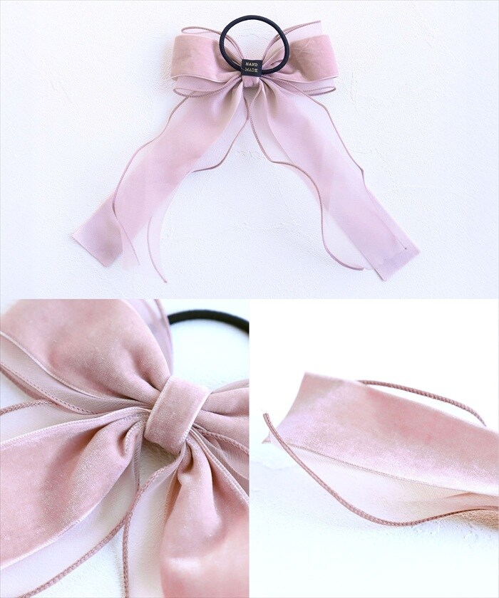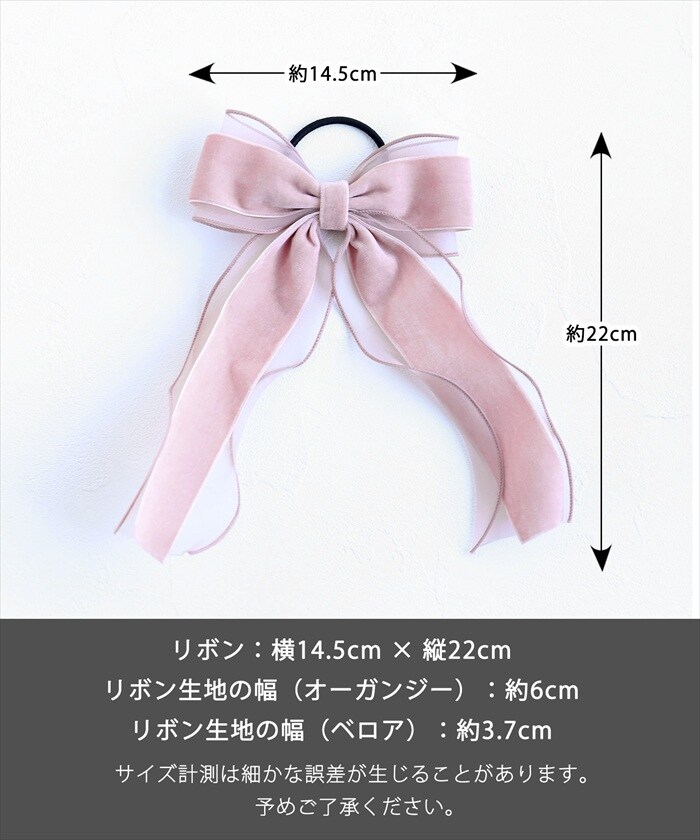 | サイズ | リボン:横14.5cm/縦22cm リボン生地の幅(ベロア):約3.7cm リボン生地の幅(オーガンジー):約6cm |