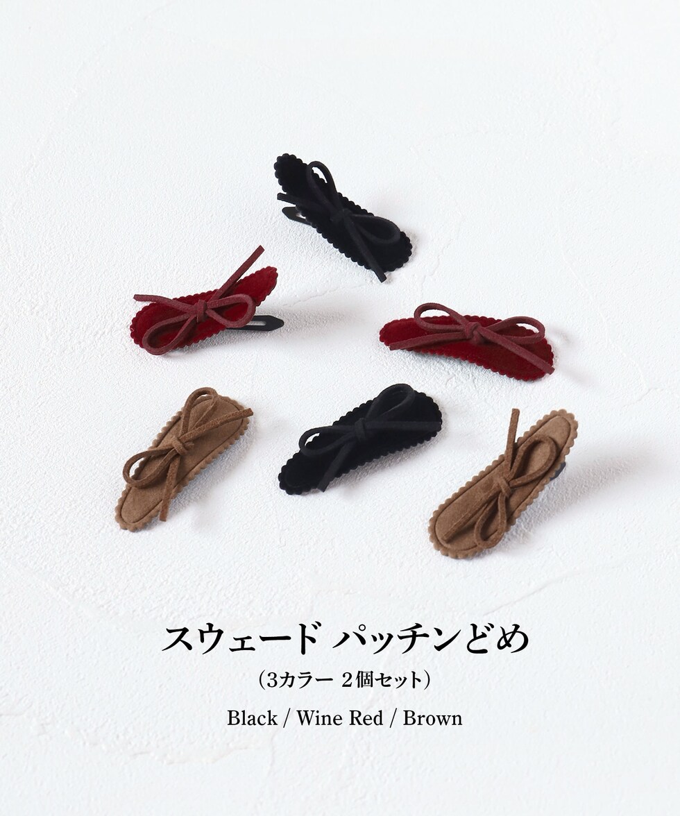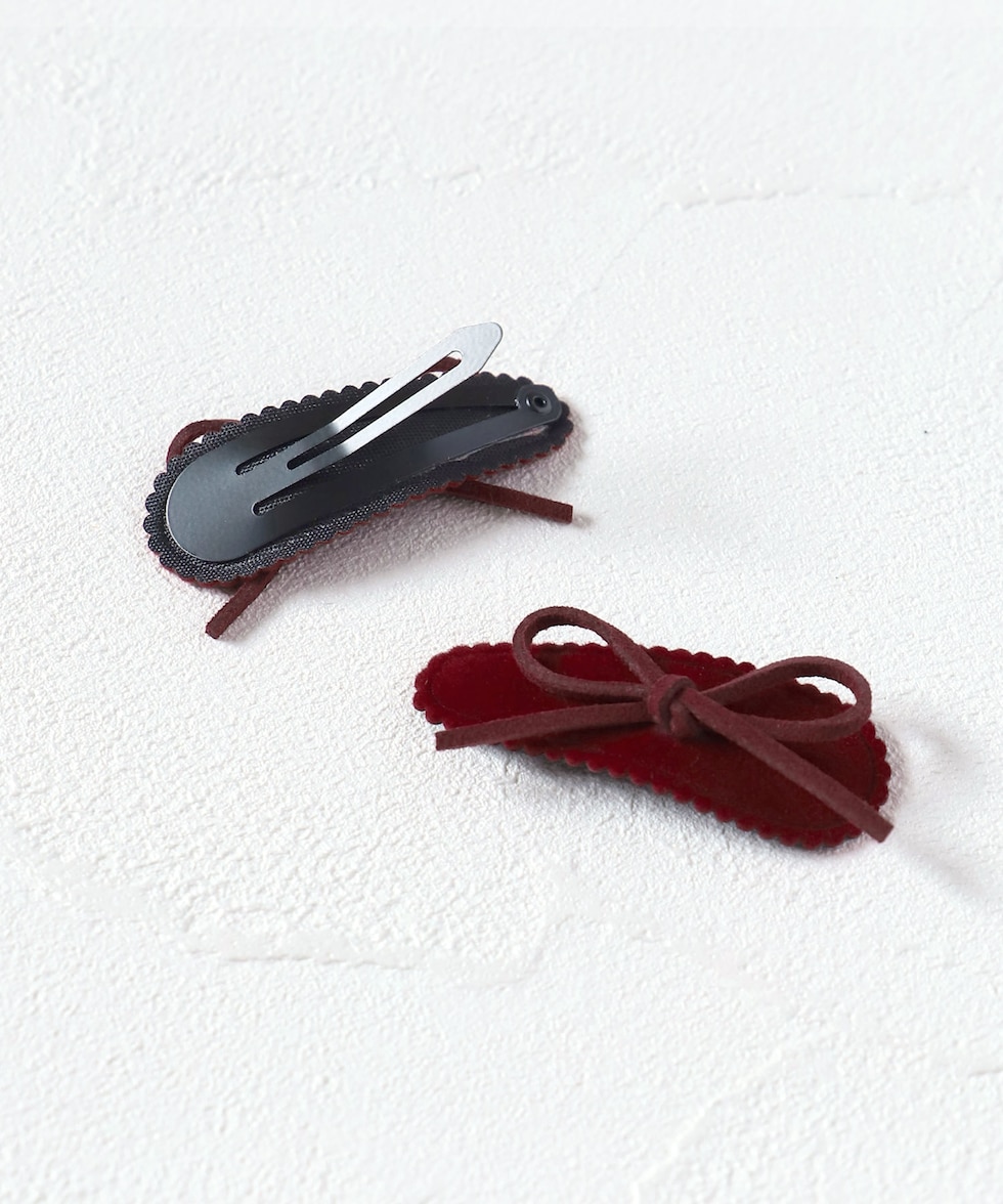 Rora レーヌ スウェード パッチンどめ 2個セット【ワインレッド】