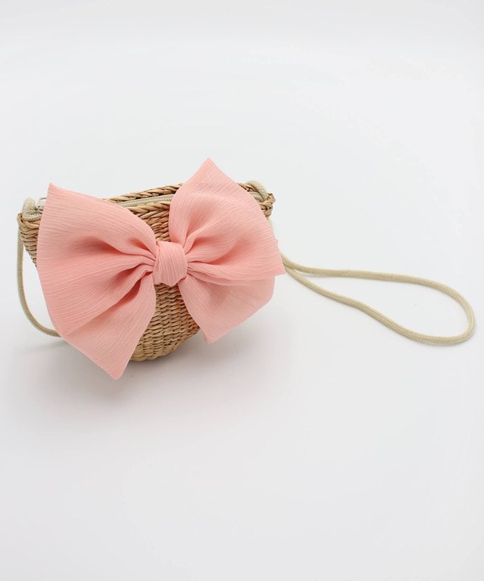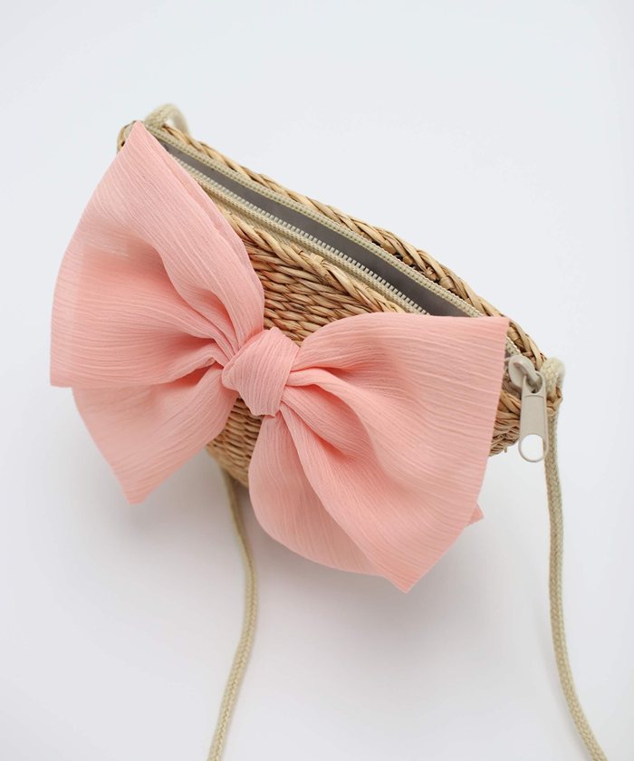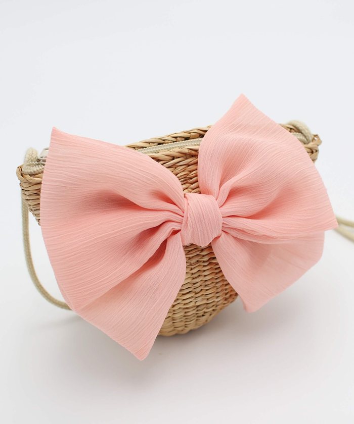 ビックリボンラタンショルダーバッグ【コーラルピンク】【FREE】