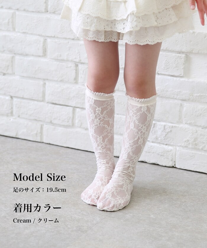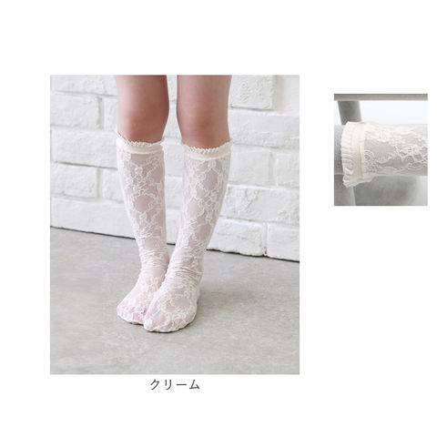 メリア総レースハイソックス【クリーム】【フリー】