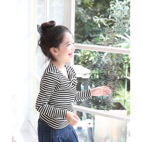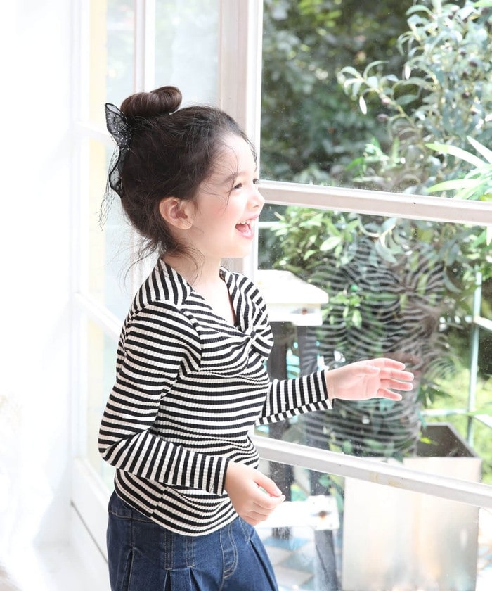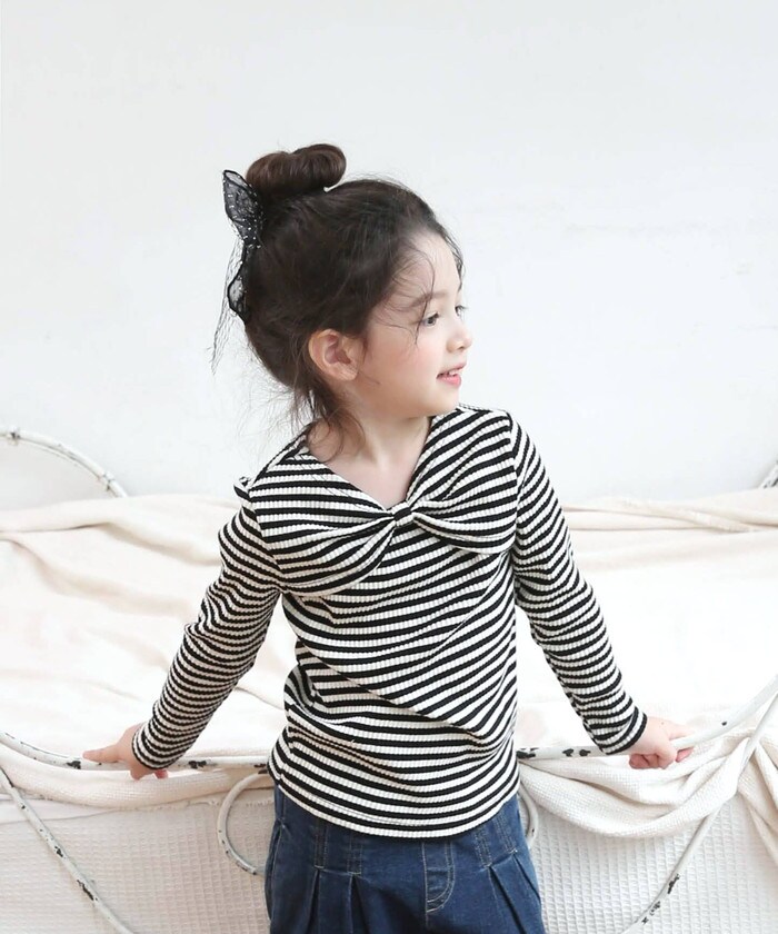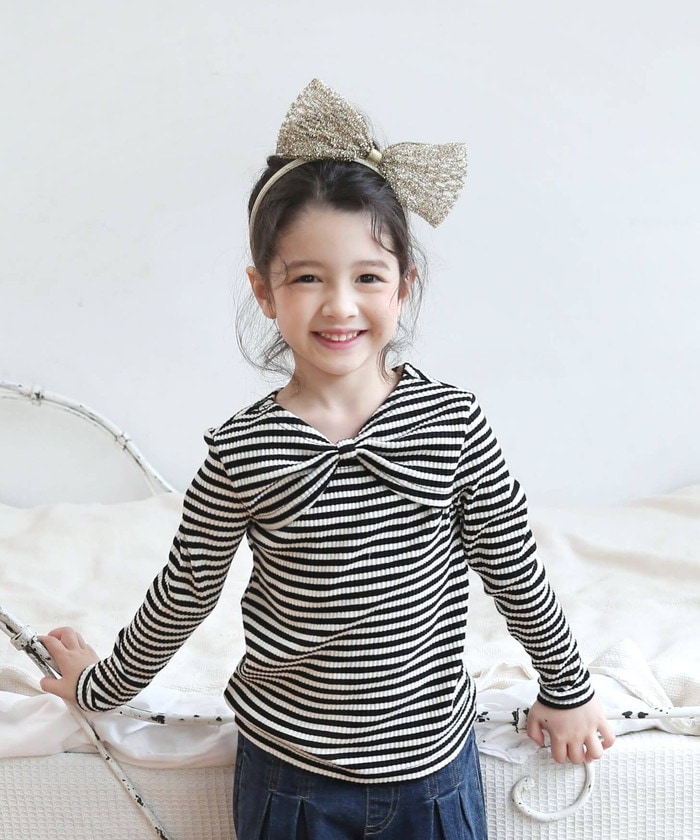 リウリボンボーダーTシャツ【ブラック】【120cm】