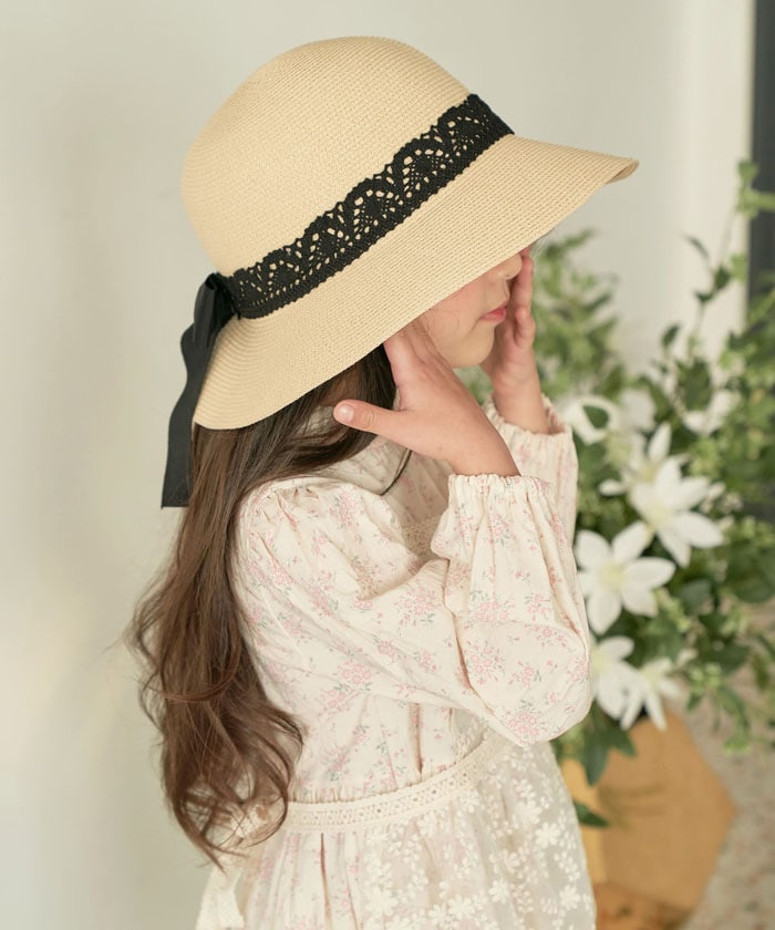 | サイズ | 頭周り:約54~58cm(紐でサイズ調節可能/ツバの長さ:8cm レースの幅:3.5cm/リボンテープの幅:3.8cm |