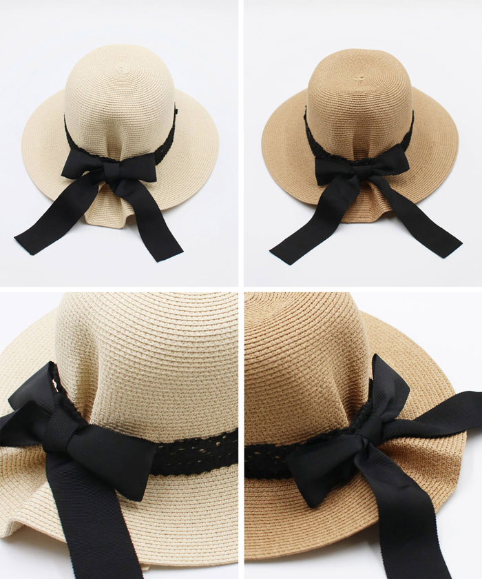 マンゴリボン麦わら帽子【ライトベージュ】【フリー】
