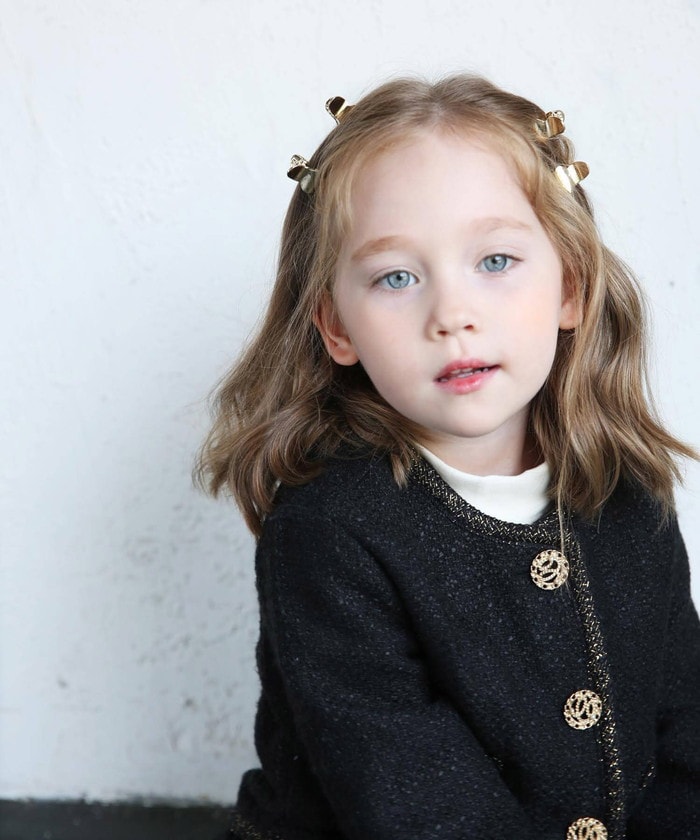 | 商品説明 | ■ペアーズツイードジャケットについてママとお揃いコーデしたくなる♪この大人っぽくて格好可愛い子供服ツイードジャケットは、特別な日のフォーマルシーンから、カジュアルなデニム系のコーディネートにぴったり合うアイテムです。その理由は、ツイード生地の魅力になります。このツイード生地は、異なる太さの 糸を組み合わせて作られており、立体感があり、非常にお洒落です。特筆すべきは、こだわりのディテールです。パール入りのゴールドボタンが、ジャケットにエレガントな要素を加えて、子供たちが大人顔負けのスタイルを楽しめるようにしています。さらに、裾と首周り、飾りポケットには、ゴールドメタルヤーン入りのファンシーヤーンのような紐の飾りが施されております。これらのディテールは、都会的で 洗練されたイメージを強調し、子供たちの自信を高めます。デイリーのシンプルさにフォーマルのエレガンスを加え、子供たちの自己表現を高めるツイードジャケット。子供服の選択において、感情とファッションの融合を重要視するママたちにおすすめする一品です。■モデルサイズ: ・身長:108cm ・体重:18.5kg ■モデルの着用サイズ ・110cm |