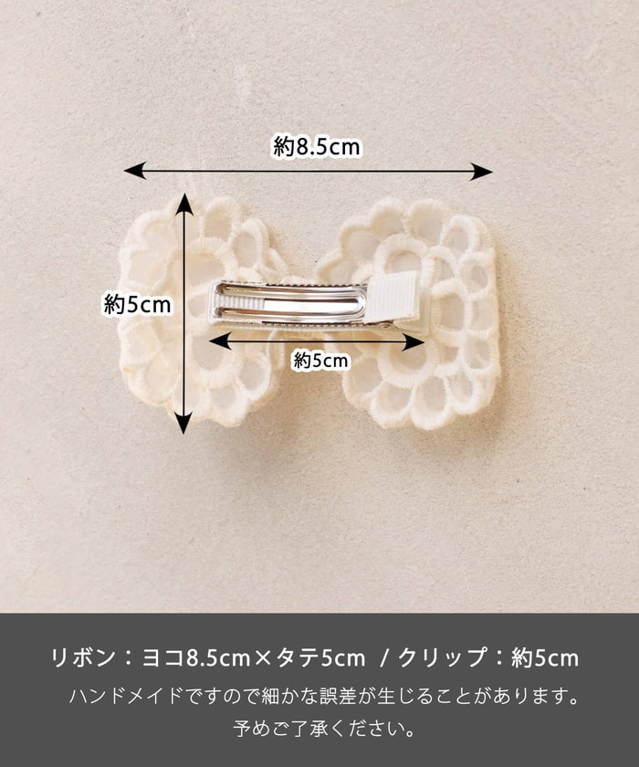 | サイズ | モチーフサイズ:ヨコ 8.5cm×タテ 5cm/クリップ 約 5cm (ハンドメイドですので細かな誤差が生じることがあります。予めご了承ください。) |