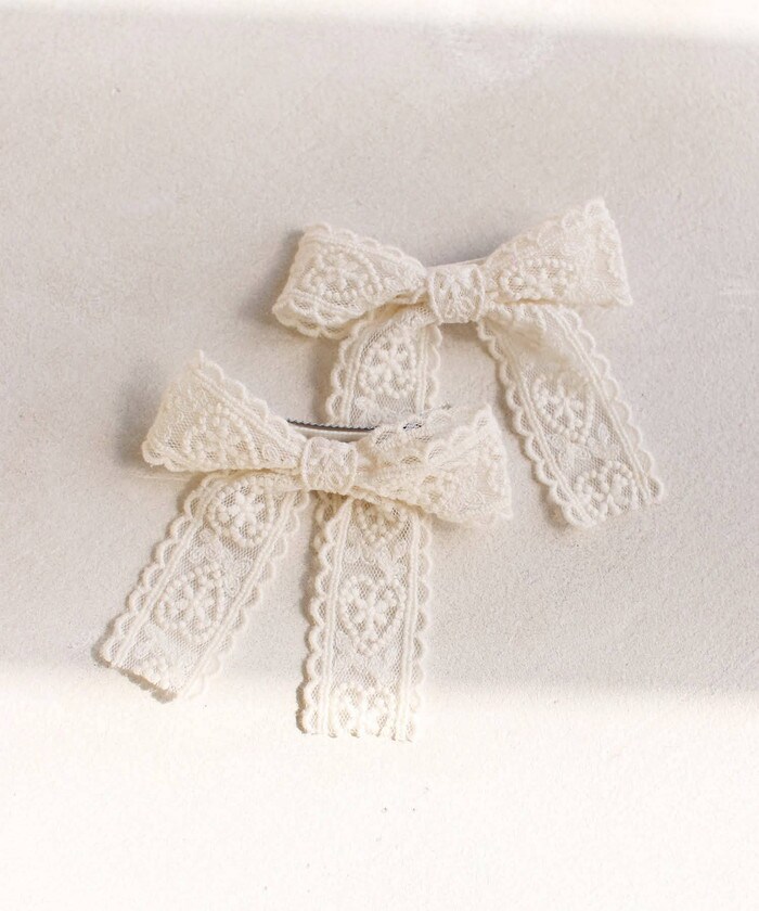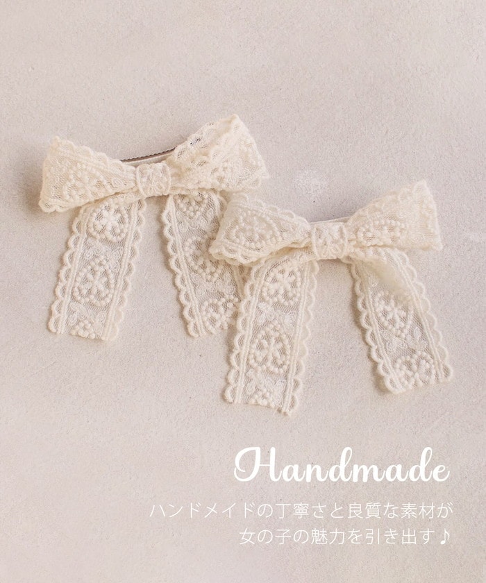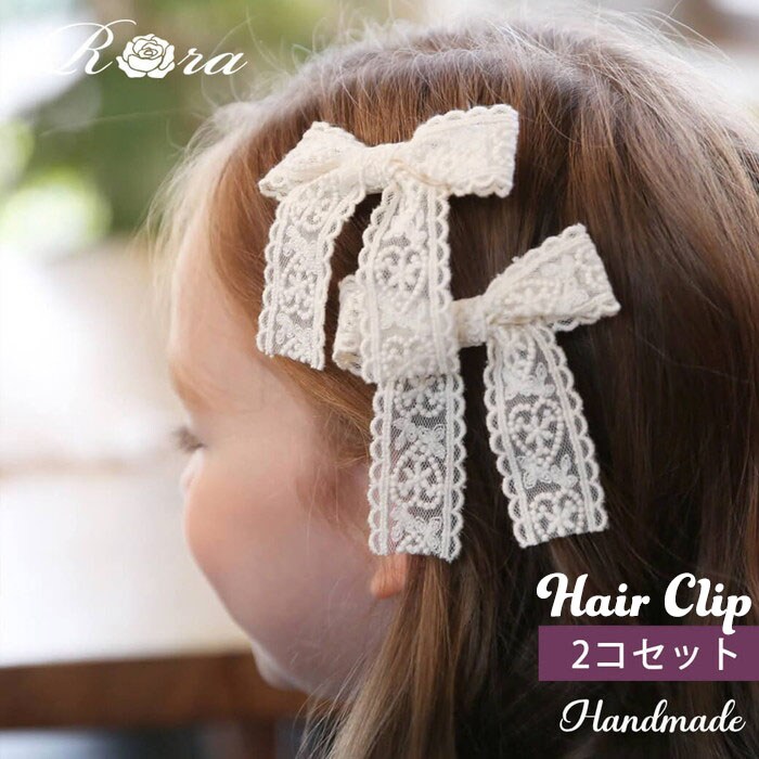 商品説明■ケイリー ヘアクリップ2個セットについて■レースをベースにとっても可愛いリボンが誕生しました♪色も質もさりげない商品さがステキなヘアピンは、まるでわが子の頭に飛んできた蝶々のようママにも一緒に付けられるように仕上げました~ナチュラル、カワイイ、キレイ目、どんなカジュアルコーデにもスタイリングしやすく、結婚式や、卒入園式、発表会などフォーマルシーズンにも一年中長く愛用できるのも嬉しいですね♪Roraハンドメイドアクセサリーが日常に溶け込む上品さを楽しんでください