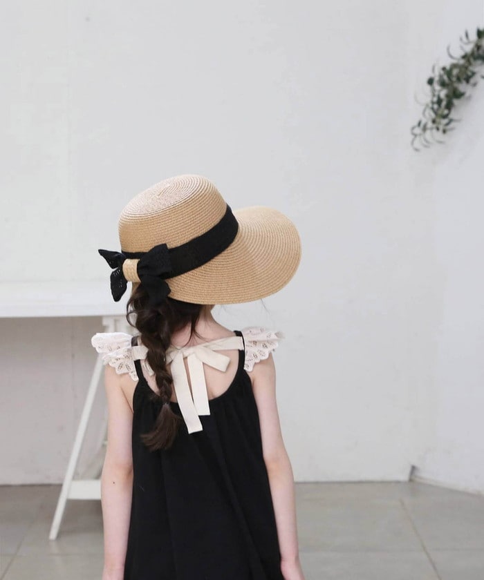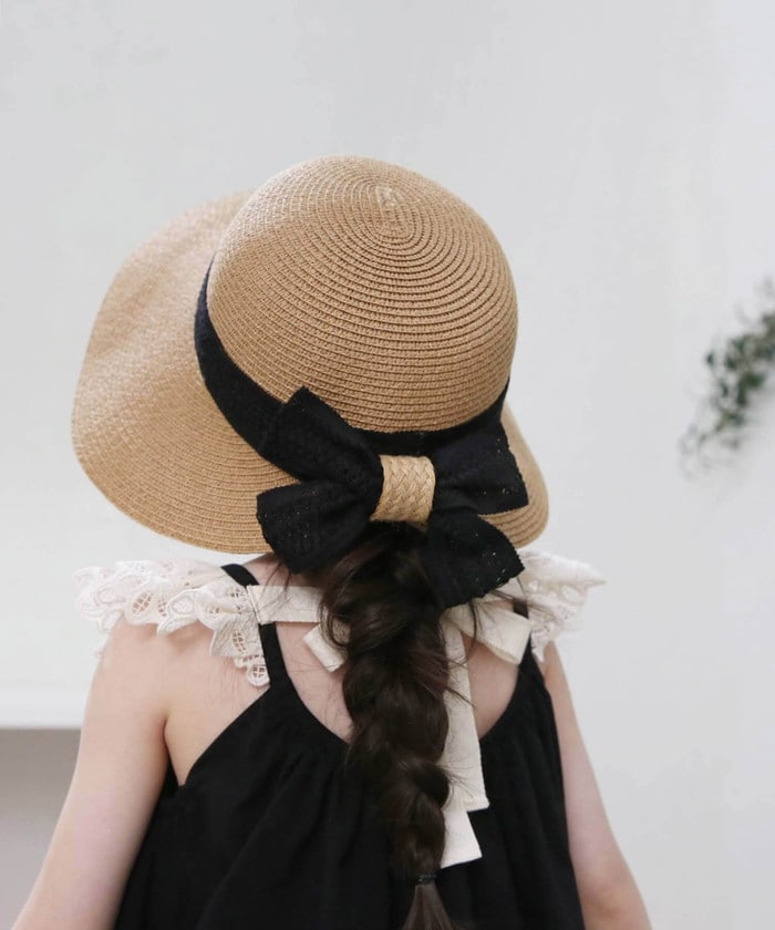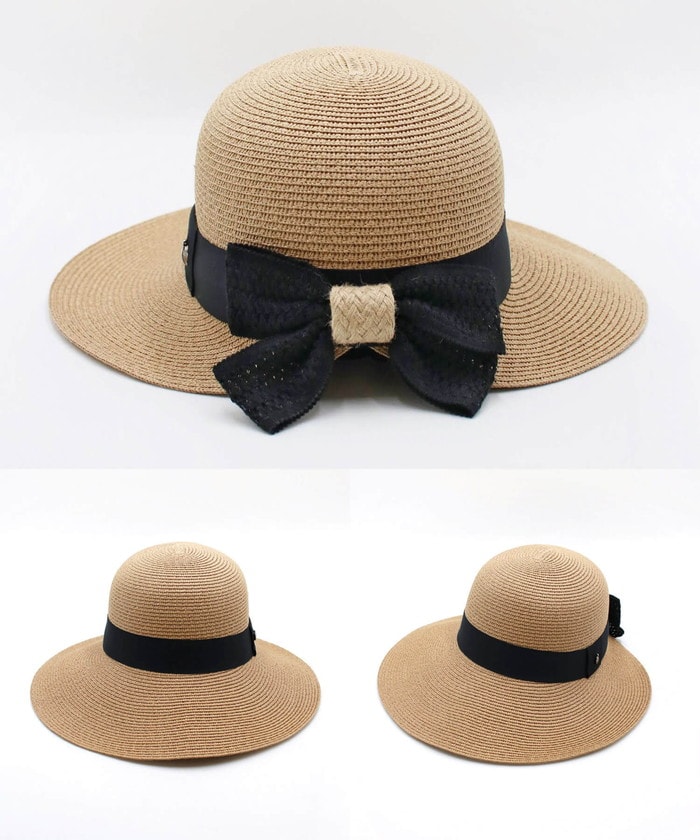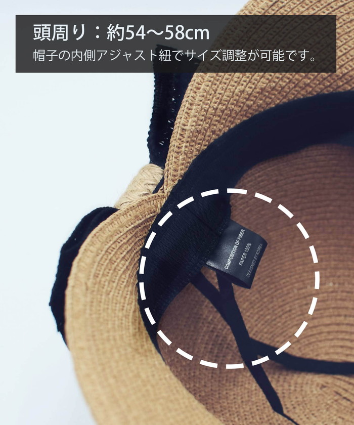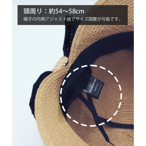 | サイズ | 頭周り:内側 約54~58cm(紐でサイズ調整可能) 前側のツバの長さ:12cm レースの幅:約4cm リボンのサイズよこ幅:16cm リボンのサイズたて幅 : 10cm |