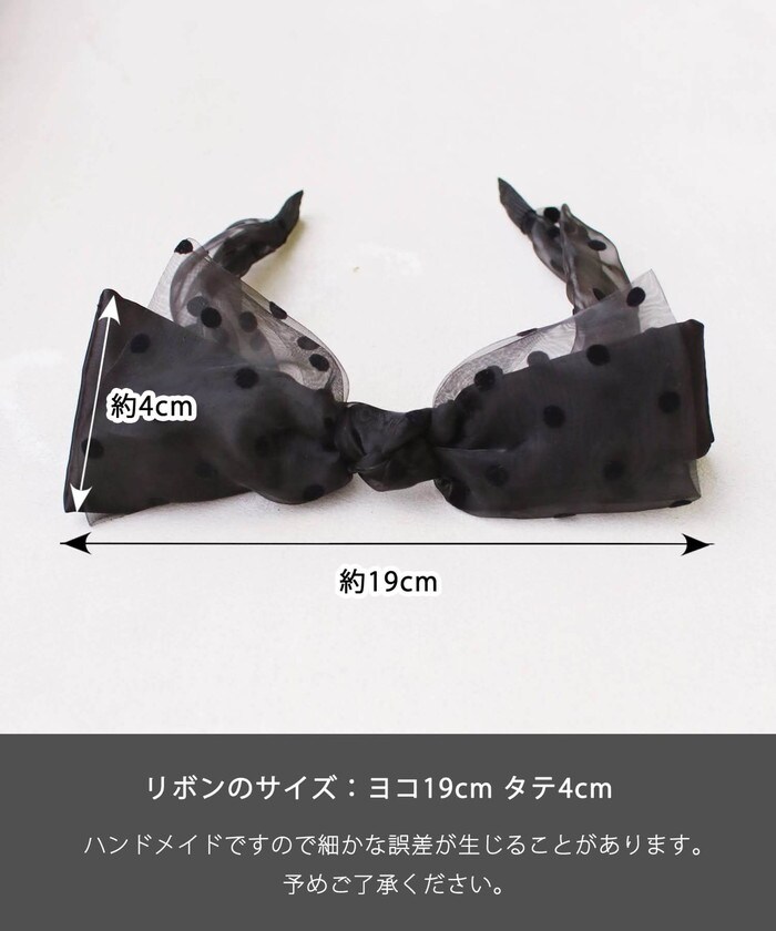 | サイズ | リボンのヨコ幅 19cm/タテ幅 4cm (ハンドメイドですので細かな誤差が生じることがあります。予めご了承ください。) |