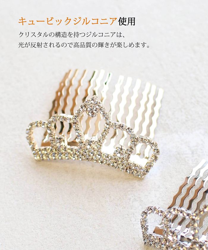 | サイズ | 冠のサイズ:ヨコ 約5cm/タテ 約2.5cm/コームのサイズ:ヨコ約4cm タテ4cm ※細かな誤差が生じることがあります。予めご了承ください。 |