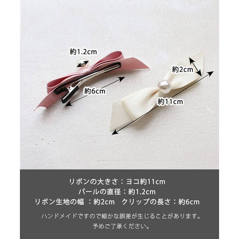 | サイズ | リボンの大きさ:ヨコ約12cm~13cm/ハートの大きさ:約1.8cm リボン生地の幅 :約2.3cm/クリップの長さ:約6cm |