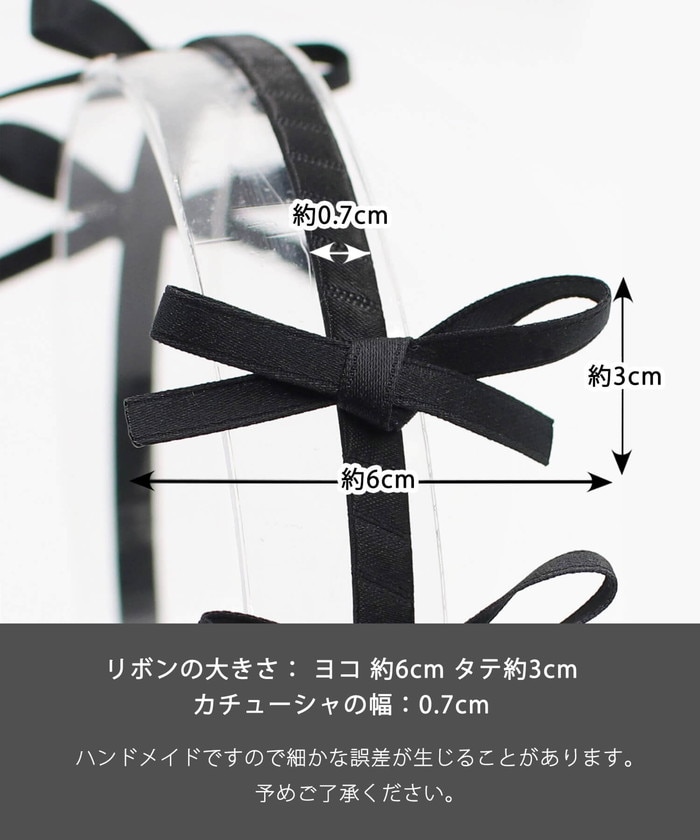| サイズ | カチューシャの幅:7mm リボンの幅: ヨコ 約6cm/タテ約3cm (ハンドメイドですので細かな誤差が生じることがあります。予めご了承ください。) |
