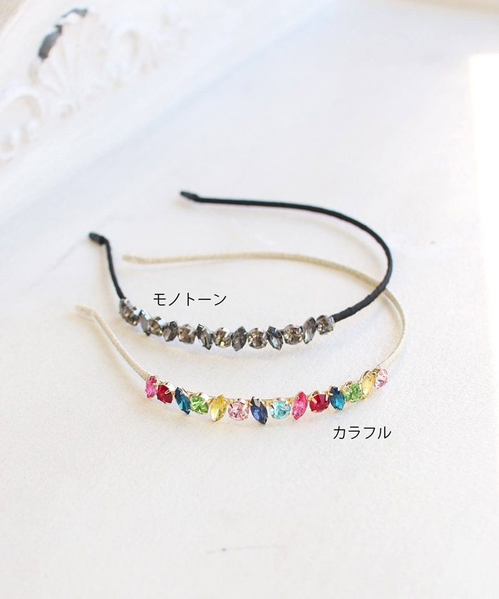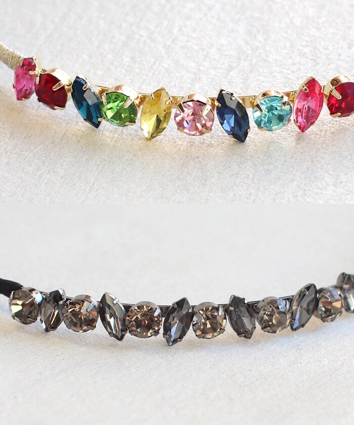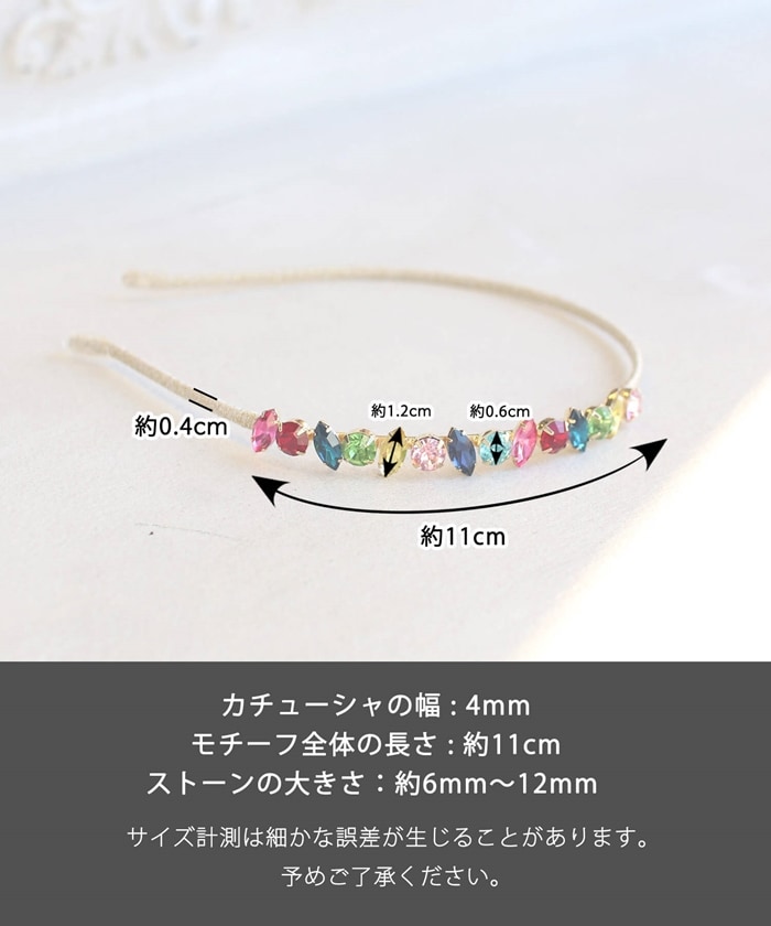 | サイズ | カチューシャの幅:4mm モチーフ全体の長さ:約11cm ストーンの大きさ:約6mm~12mm |