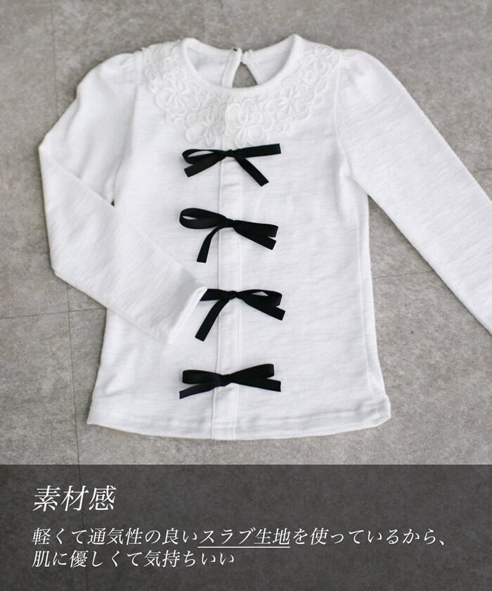 | 商品説明 | ボリーフォーマルカジュアル長袖Tシャツについて娘さんが大好きになること間違いなしの スラブ生地リボントップス。軽くて気持ちいい!通気性の良いスラブ生地を使っているから、肌に優しくて気持ちいい。子供のデリケートな肌にもぴったりです。上品なレースでおしゃれ 襟元に豪華なレースが付いていて、まるでブラウスみたいな上品さ。これ一枚で特別な日も大丈夫!トレンドの細リボン 真ん中には黒の細リボンが付いていて、白い生地に映えてとってもおしゃれ。大人っぽくてトレンディーな印象です。スタイルアップ効果バッチリ 前立てのデザインで、着るだけで細く見える効果も!これならおしゃれに見えること間違いなし。簡単に着られる すっぽりかぶるタイプだから、忙しい朝でも簡単に着られます。子供自身でも脱ぎ着が楽ちんです!おしゃれで快適なこのトップスを着て、娘さんの毎日を特別にしてあげたい。他の子供たちと差をつけて、毎日の活動をもっと楽しく!ぜひお試しくださいね♪■モデルサイズ:身長116cm、体重19.5kg ■モデルの着用サイズ:100cm フィット感を出すために100cmを着用しました (普段は110cm着用) ★STAFFCOMMENT★スタッフの子供が着用してみました♪ーーーーーーーーーーーーーーーーーーー【サイズ感】 ・8歳/121cm22kg/細身体型/普段サイズ:120 ・120:丁度よい ・11歳/145cm37kg/普通体型/普段サイズ:150 ・150:丁度よい 【透け感】透け感はありません。【着心地・素材感】秋口に丁度よい厚さ 少しラインが出るのに抵抗があれば、ワンサイズアップがオススメ。ーーーーーーーーーーーーーーーーーーー |