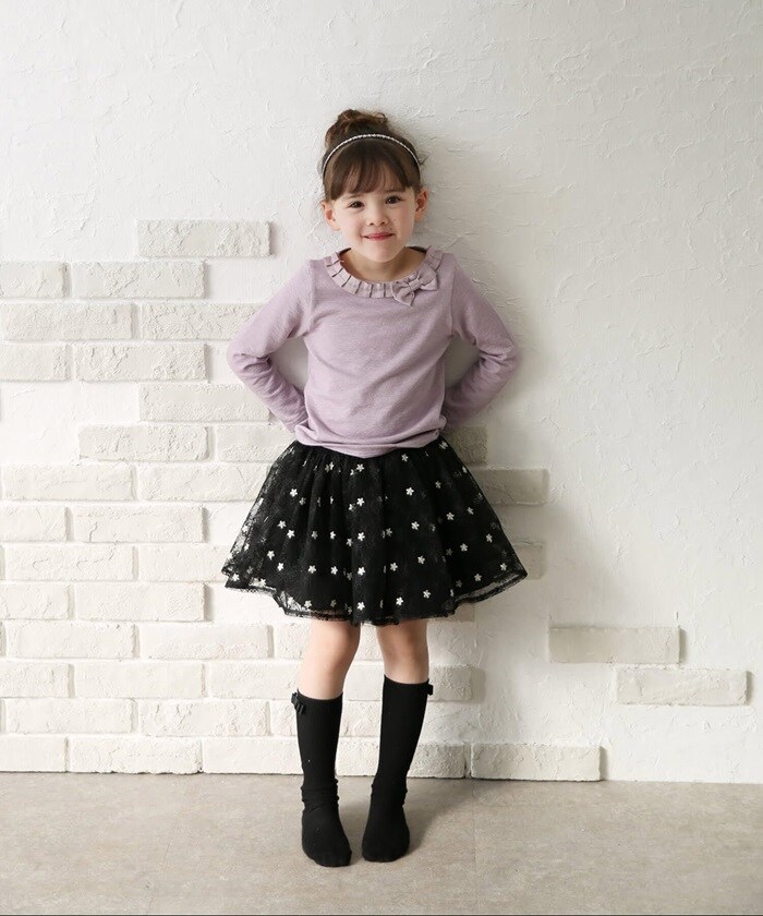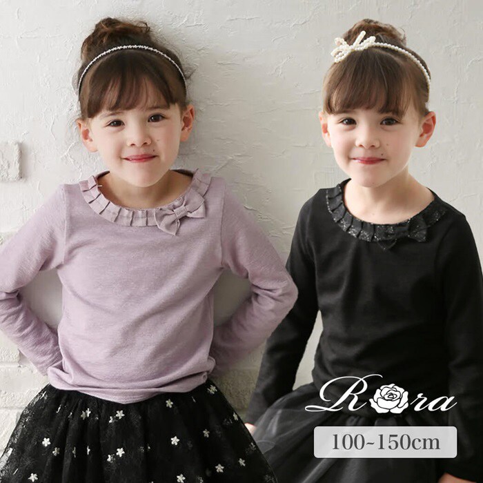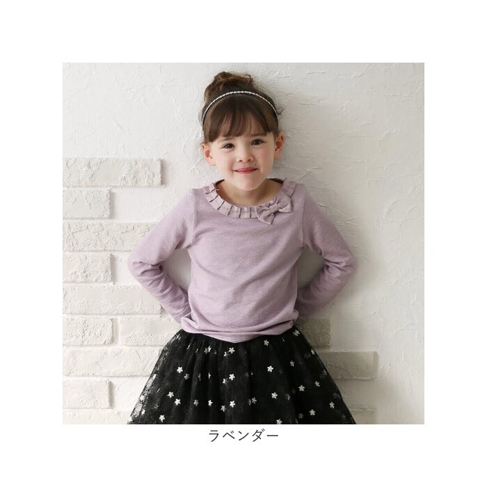 レガントリボンフリル長袖Tシャツ【ラベンダー】【150cm】