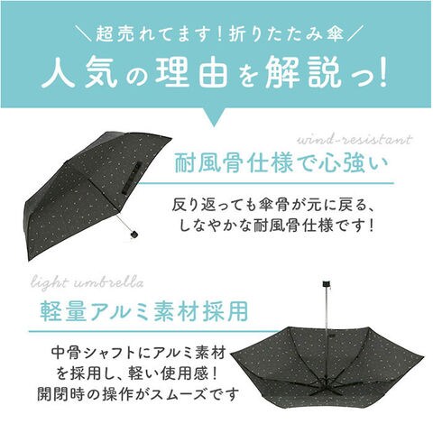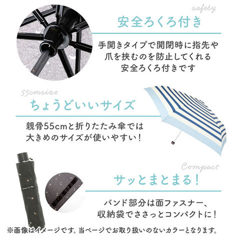| サイズ | [親骨の長さ]約55cm/[直径]約96cm/[全長]約55.5cm [収納時の長さ]約24cm [収納時の幅]約7.5cm ※サイズは当店計測の実寸サイズです。実際の商品ならびにメーカー表記サイズとは多少の誤差が生じる場合がございます。あらかじめご了承ください。 |