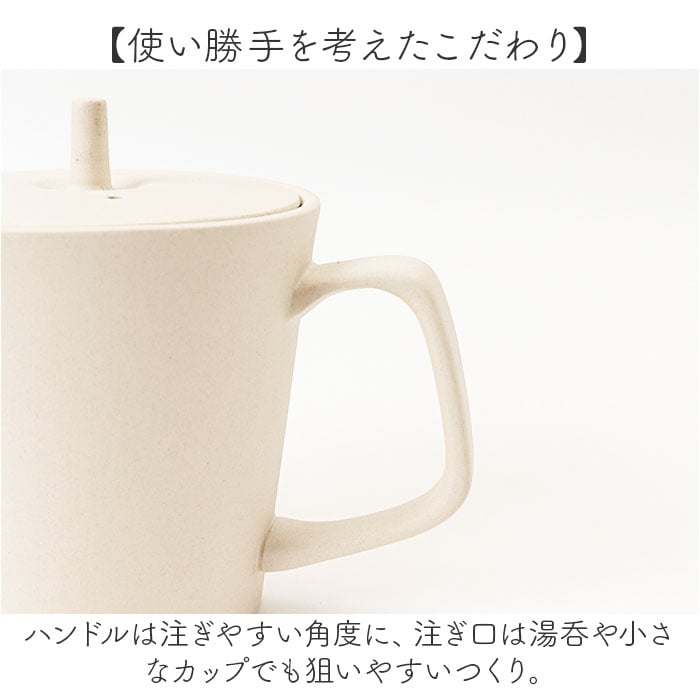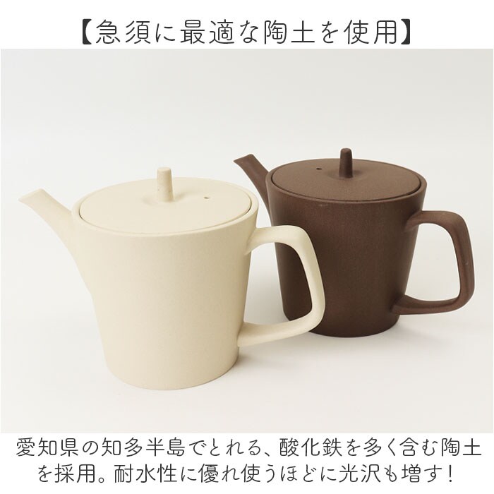 | 商品説明 | 【味わいが増し、育てる楽しみも】こだわりの日本製。使い込むほどに愛着がわく「ロクサン tokoname 縦型急須」。【歴史ある伝統の常滑焼急須】愛知県常滑市で作られている焼き物。釉薬を使わない自然な色合いと高精度の均一な仕上がり◎【急須に最適な陶土を使用】愛知県の知多半島でとれる、酸化鉄を多く含む陶土を採用。耐水性に優れ使うほどに光沢も増す!【風味豊かなお茶を味わえる】ティーポットのような縦型形状。内部が広く、茶葉の茶葉のジャンピングがよく起こる♪【本来の味を楽しめる一体型茶こし】微細な穴が空いた本体一体型セラメッシュフィルター。金属臭や雑味が生まれず本来の美味しさ♪【茶葉も溢れにくく快適】開口部が広いので、茶葉が引っかかり溢れにくい!注ぐ際に角度がつきすぎてしまっても安心。【使い勝手を考えたこだわり】ハンドルは注ぎやすい角度に、注ぎ口は湯呑や小さなカップでも狙いやすいつくり。【和にも洋にも使えるアイテム】煎茶やほうじ茶などの日本茶。香り高い紅茶を淹れるポットとしても重宝。【お好みのカラーをチョイス】温かみがありつつ、表情の異なる3カラー。お気に入りのアイテムで、暮らしを豊かに。 |