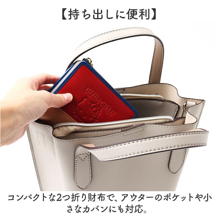 | 商品説明 | 【レトロで可愛いお財布】・80年代デザインの「HELLO KITTY」が描かれたレトロ可愛い2つ折り財布。【HELLO KITTYデザイン】フロントにはキティちゃんが大きく描かれており、キティちゃん好きには嬉しいアイテム。【どこか懐かしさも】キティちゃんは80年代デザインを採用し、レトロさを感じるのもポイント。【大人女子にもおススメ】ベーシックなカラーの組み合わせで派手過ぎず年代問わず使えるバイカラー仕様。【本革仕様】手触りが柔らかい牛皮を使用。使ううちに馴染み経過変化を楽しめるのもポイント。【現金派の方も嬉しい多収納】・2ルームの小銭入れ、お札入れはもちろん、フリーポケットを設け多収納に。【カードもひとまとめに】カードポケットは6つ配置し、ポイントカードや診察券もまとめてIN!【出し入れしやすい小銭入れ】L字ファスナーを採用し、ガバッと大きく開く小銭入れ。出し入れしやすくお会計もスムーズ。【持ち出しに便利】コンパクトな2つ折り財布で、アウターのポケットや小さなカバンにも対応。【可愛いパッケージ入り】「HELLO KITTY」ロゴ付きの化粧箱入り。もちろん大切な人へのプレゼントにも最適☆【ポケット仕様】カードポケット×6、フリーポケット×4、お札入れ×1(2ルーム)、小銭入れ×1(2ルーム) |