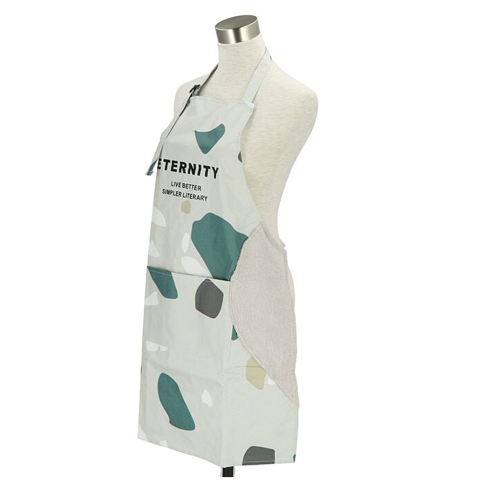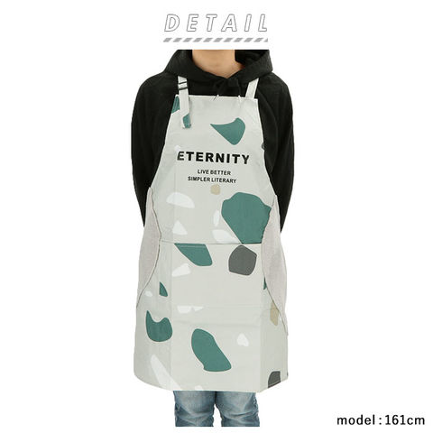 | 商品説明 | 素材の切り替えに技あり!スタイリッシュに着こなせる機能的な防水エプロンが登場。フロント部分はしっかりと水や汚れを弾く防水素材を使用。飲み物などがこぼれてもサッと表面を拭くだけでOK。サイドからバックにかけては素材の違う生地を使用。部分的に柔らかな手触りの起毛素材を用いることで、お尻周りのフィット感も抜群。首にかけるタイプの肩紐は、フロントのアジャスターで長さの調節が可能。腰紐はバックでキュッとリボン結びに。ご自身の体型に合わせて身幅の調節ができるのも嬉しいポイント。フロントには使いやすい大きめポケットが1つ。水濡れに強いエプロンだから、ガーデニングにもぴったり♪ |