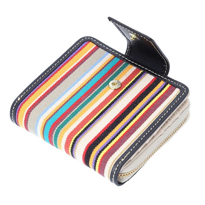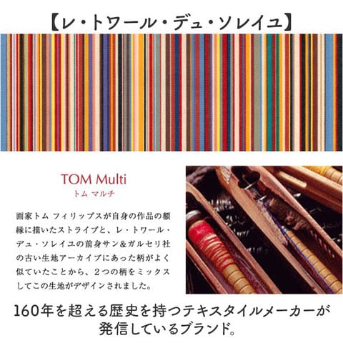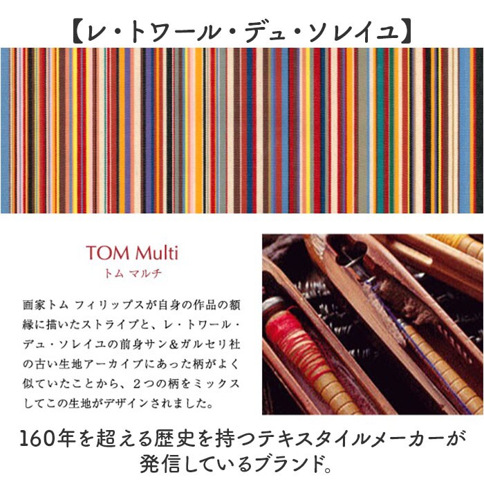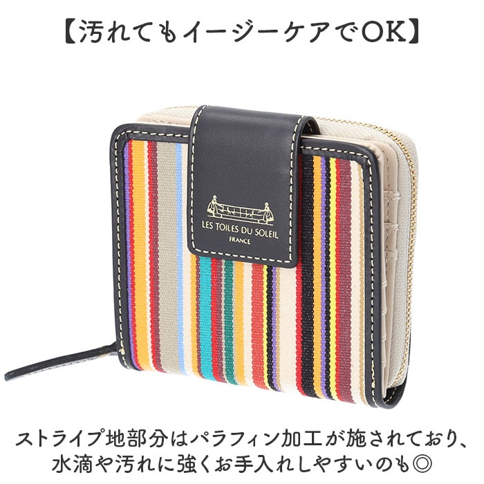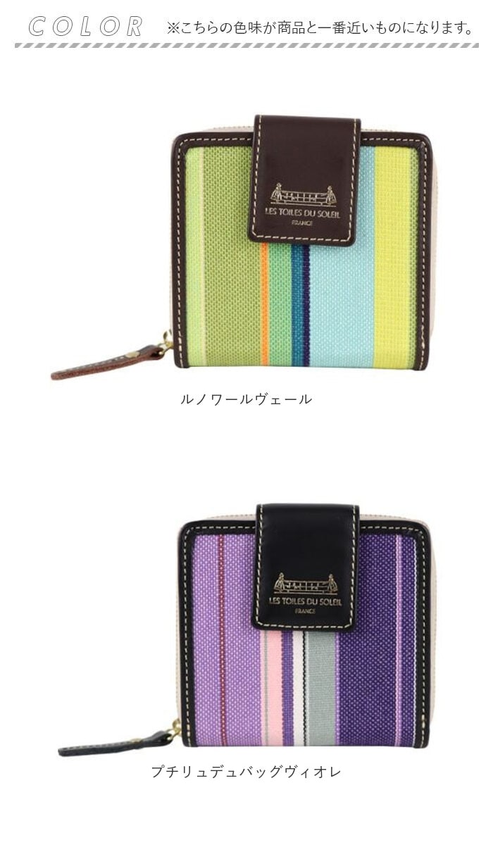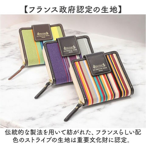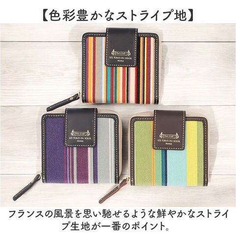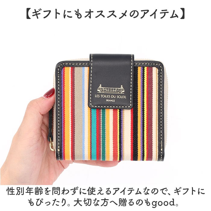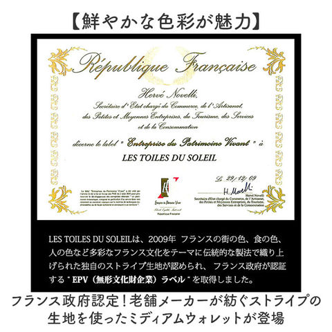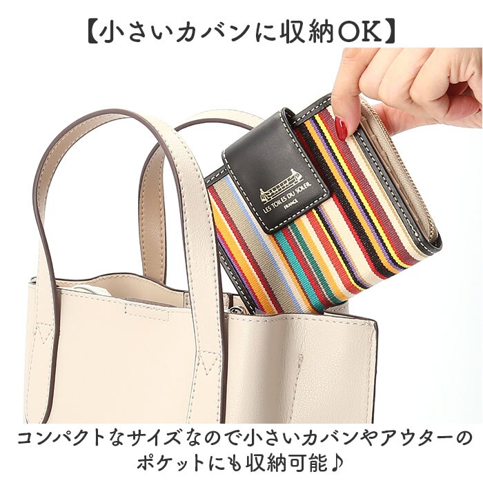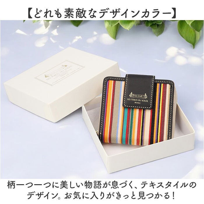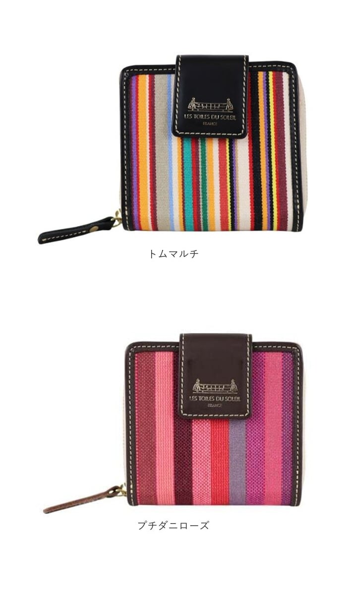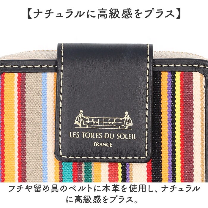 | 商品説明 | 【鮮やかな色彩が魅力】フランス政府認定!老舗メーカーが紡ぐストライプの生地を使ったミディアムウォレットが登場【レ・トワール・デュ・ソレイユ】・160年を超える歴史を持つテキスタイルメーカーが発信しているブランド。【フランス政府認定の生地】伝統的な製法を用いて紡がれた、フランスらしい配色のストライプの生地は重要文化財に認定。【小さいカバンに収納OK】コンパクトなサイズなので小さいカバンやアウターのポケットにも収納可能♪【現金派の方もオススメ♪】小さいながらも収納はしっかり確保した作りなので、日ごろ使うカードや現金をひとまとめ♪【独立した小銭入れでスムーズ】小銭入れは独立した設計なので、小銭のみのお会計もスムーズに完了。【色彩豊かなストライプ地】フランスの風景を思い馳せるような鮮やかなストライプ生地が一番のポイント。【ラフ過ぎないゴールドパーツ】金具部分にはゴールドパーツを使用し、ラフすぎず様々なコーデに対応。【ナチュラルに高級感をプラス】フチや留め具のベルトに本革を使用し、ナチュラルに高級感をプラス。【汚れてもイージーケアでOK】ストライプ地部分はパラフィン加工が施されており、水滴や汚れに強くお手入れしやすいのも◎【どれも素敵なデザインカラー】柄一つ一つに美しい物語が息づく、テキスタイルのデザイン。お気に入りがきっと見つかる!【ギフトにもオススメのアイテム】性別年齢を問わずに使えるアイテムなので、ギフトにもぴったり。大切な方へ贈るのもgood。【ポケット仕様】フラップ内部・・・カード入れ×7、お札入れ×1背面・・・小銭入れ×1(2ルーム) |