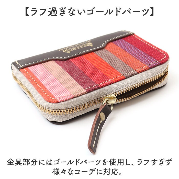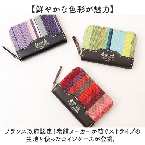 商品説明【鮮やかな色彩が魅力】フランス政府認定!老舗メーカーが紡ぐストライプの生地を使ったコインケースが登場。【レ・トワール・デュ・ソレイユ】・160年を超える歴史を持つテキスタイルメーカーが発信しているブランド。【フランス政府認定の生地】伝統的な製法を用いて紡がれた、フランスらしい配色のストライプの生地は重要文化財に認定。【カードやコインの収納に】日ごろ使うカードや少量のコインの収納に便利。キャッシュレス派の方やサブ財布にオススメ♪【色彩豊かなストライプ地】フランスの風景を思い馳せるような鮮やかなストライプ生地が一番のポイント。【ラフ過ぎないゴールドパーツ】金具部分にはゴールドパーツを使用し、ラフすぎず様々なコーデに対応。【手になじむ本革も使用】手が触れる部分は馴染みやすく持ちやすい牛革を使用。ナチュラル感の中に高級感もプラス。【汚れてもイージーケアでOK】ストライプ地部分はパラフィン加工が施されており、水滴や汚れに強くお手入れしやすいのも◎【小さいカバンに収納OK】コンパクトなサイズなので小さいカバンやアウターのポケットにも収納可能♪【どれも素敵なデザインカラー】柄一つ一つに美しい物語が息づく、テキスタイルのデザイン。お気に入りがきっと見つかる!【ギフトにもオススメのアイテム】性別年齢を問わずに使えるアイテムなので、ギフトにもぴったり。大切な方へ贈るのもgood。【ポケット仕様】カード入れ×2、フリーポケット×2、中央仕切りポケット×1