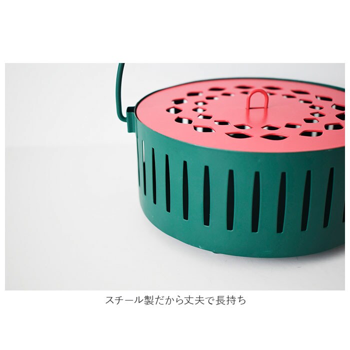 | 商品説明 | インテリア性と実用性のある優れもの、フルーツとオルテガデザインが可愛い「デザイン蚊遣り箱」が登場!蚊取り線香を中に入れる容器タイプ。フタ付きなのでエアコンや扇風機など風にあたっても灰が周りに飛びにくい嬉しい仕様。小さなお子様やペットがいるご家庭でも安心。スチール製だから丈夫で長持ち。火が燃え移る心配ナシ♪底面は3点足つきで安定していて、重さもあるからひっくり返りにくい。取っ手付きだから持ち運びしやすく、木や物干し竿に引っ掛ければアウトドアやガーデニングで大活躍! |