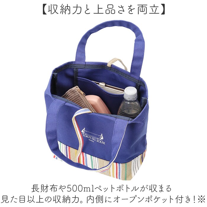 | 商品説明 | 【大人のデイリーバッグ】鮮やかな色彩が魅力♪「レトワール デュ ソレイユ リバイバルトートS」。【レ・トワール・デュ・ソレイユ】160年を超える歴史を持つテキスタイルメーカーが発信しているブランド。【収納力と上品さを両立】長財布や500mlペットボトルが収まる見た目以上の収納力。内側にオープンポケット付き!※底板は付属していません。【リボンがアクセントに】口元のリボンデザインが可愛らしく華やかさをプラス。【普段使いにぴったり】丈夫なキャンバス生地に鮮やかなストライプ柄が、カジュアルすぎずコーデに馴染む。※持ち手の柄の出方はランダムです。 |