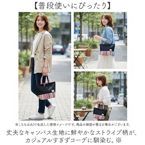 | サイズ | [縦]約23cm/[上部横幅]約32cm/[底部横幅]約20.5cm [マチ]約11.5cm/[持ち手]約36cm ※サイズは当店計測の実寸サイズです。実際の商品ならびにメーカー表記サイズとは多少の誤差が生じる場合がございます。あらかじめご了承ください。 |