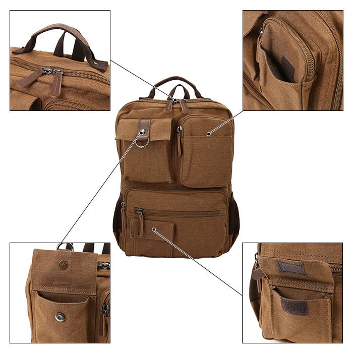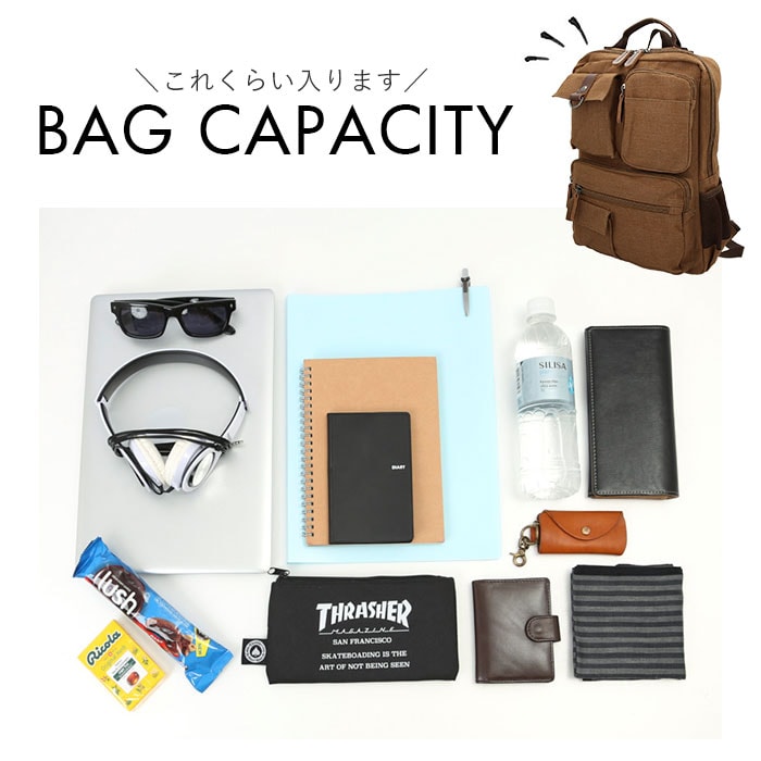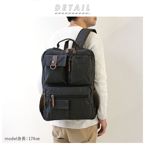 | 商品説明 | どんなスタイルにも合わせやすい!大人かっこいいデザインのカジュアルリュックが新登場。耐久性のあるキャンバス素材を採用。カジュアルな雰囲気ながらも高級感のある見た目は年代問わず持ち歩ける!メイン収納はダブルファスナーで大きく開き中が見やすい!B4サイズの書類などもすっきり収納でき、内側にはオープンポケット×2、15インチのPCが収納できるクッション素材のポケットを装備。リュックのフロントにはファスナーポケット×3、マグネットボタン式のポケット×1、マジックテープ仕様のミニポケット×2を装備。豊富な小物ポケットに使用頻度の高いものを収納すれば取り出しやすくてとても便利。外側両サイドに付いているメッシュのオープンポケットはドリンクや折り畳み傘を入れるのに最適。ショルダー部分にはリュックを背負った際に肩へ負担がかかりにくい幅広タイプのパッドを使用。メッシュ仕様で蒸れを防いでくれるのも嬉しい。通勤・通学用はもちろん、大きめなリュックをボーイズライクに持ちたい女子にもおすすめなアイテム♪ |